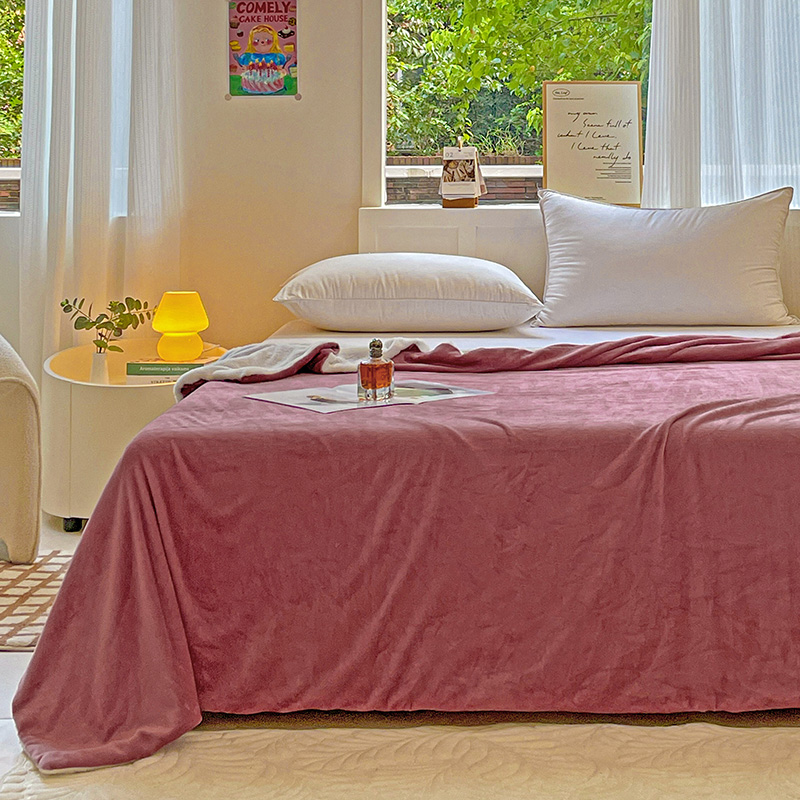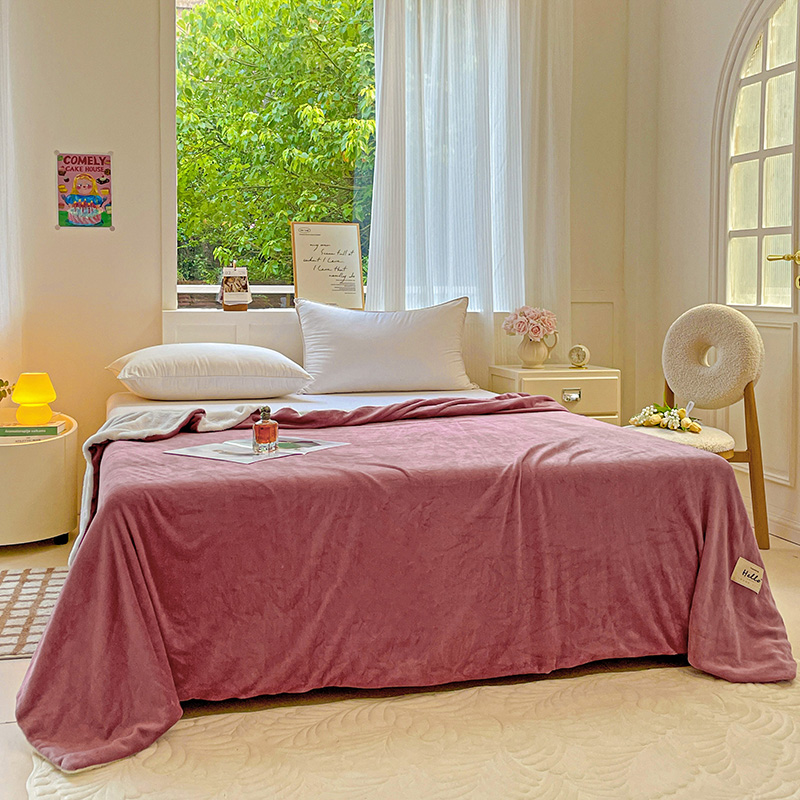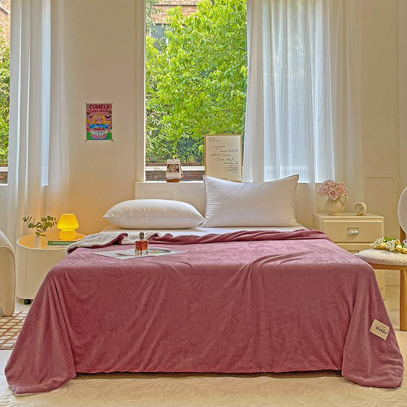 亚龙工厂店 2024新款牛奶绒盖毯被 豆沙