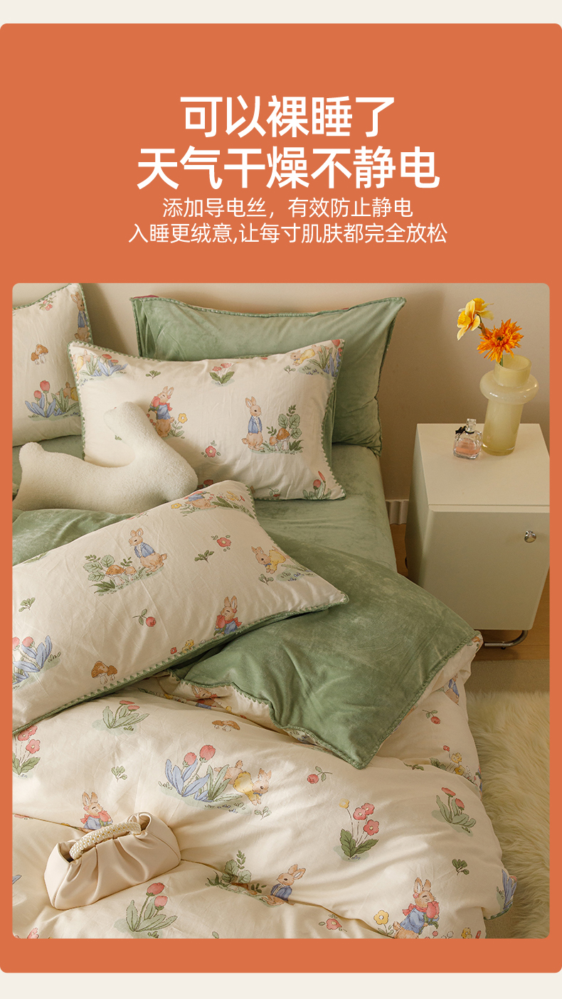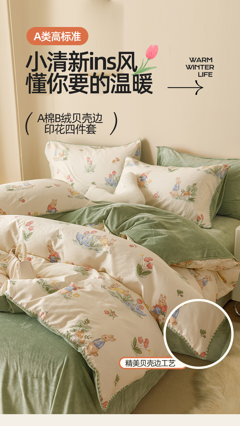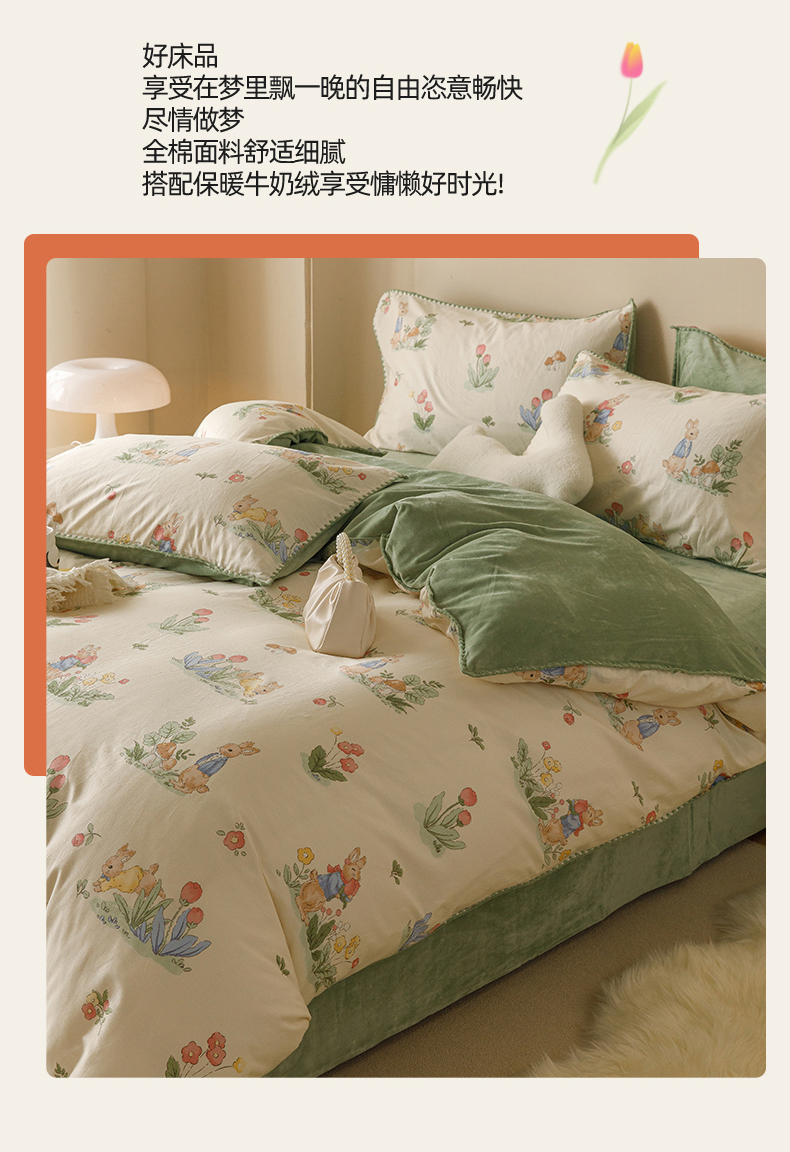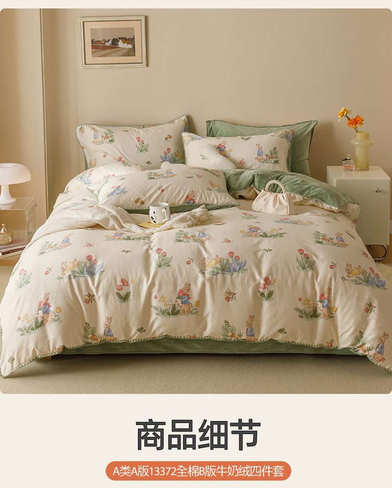 当前位置: 91家纺网 > 商品网购 > 床品套件 > 四件套 > 牛奶绒四件套 > 2025新款三角针贝壳边棉加牛奶绒工艺款四件套 兔先生