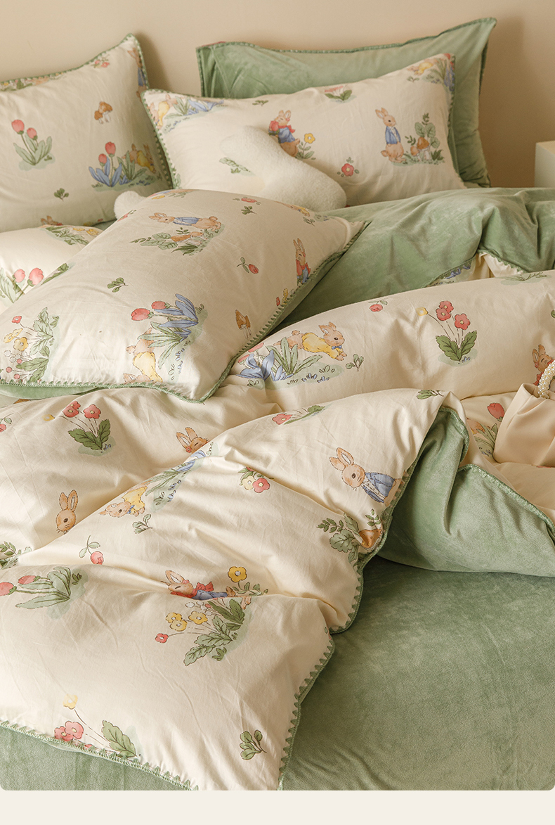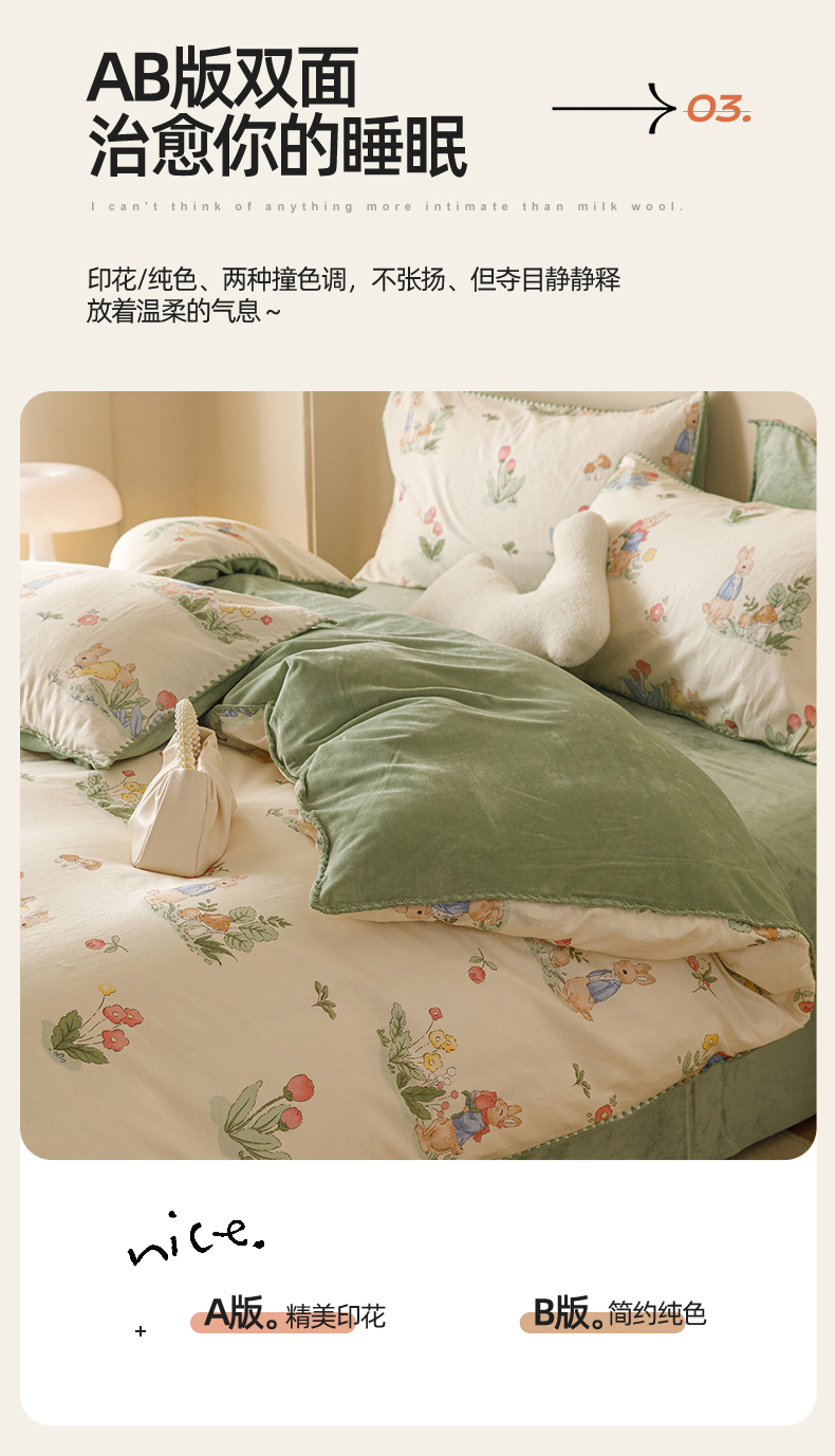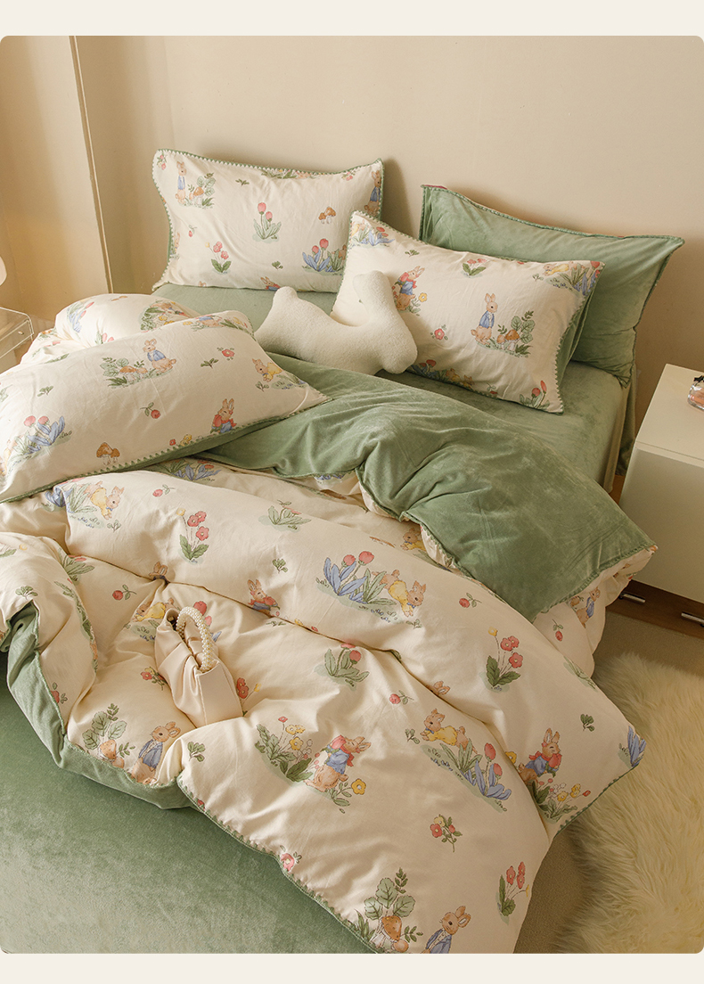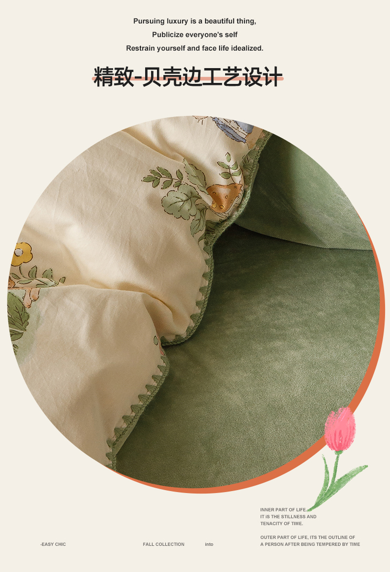 当前位置: 91家纺网 > 商品网购 > 床品套件 > 四件套 > 牛奶绒四件套 > 2025新款三角针贝壳边棉加牛奶绒工艺款四件套 兔先生