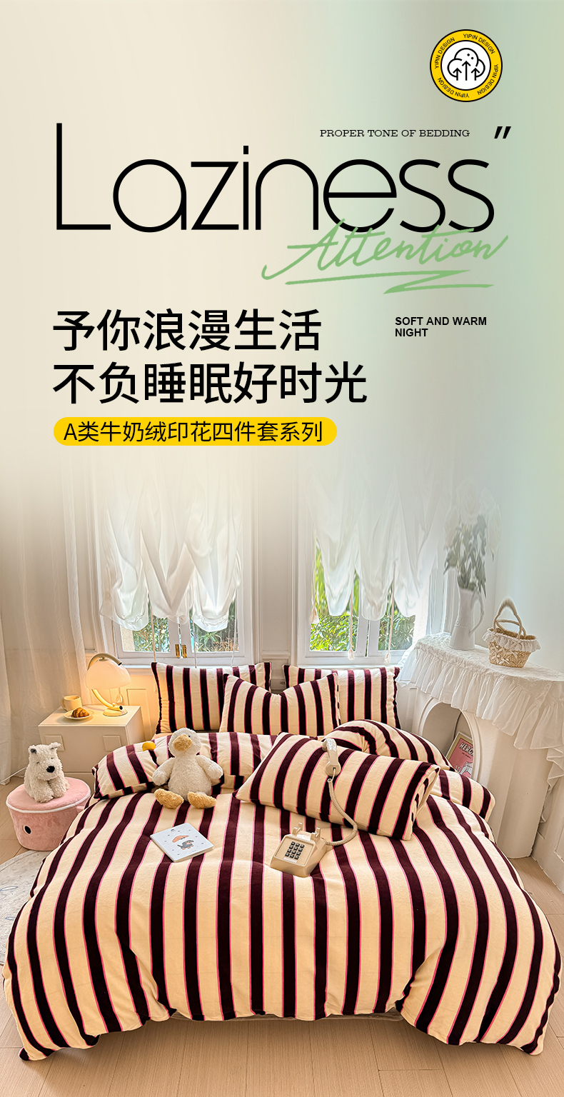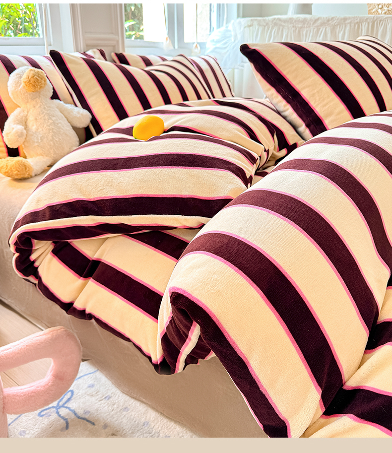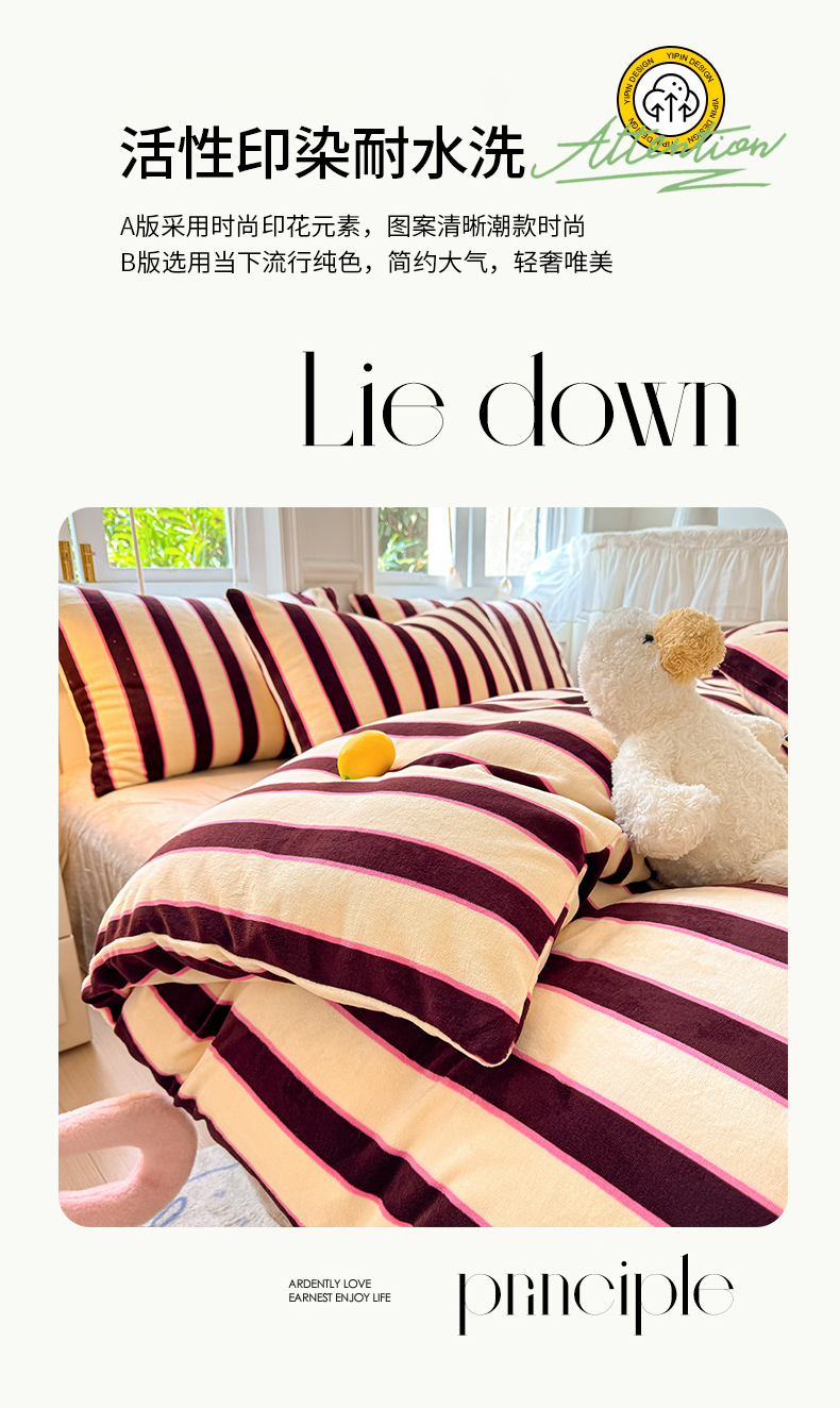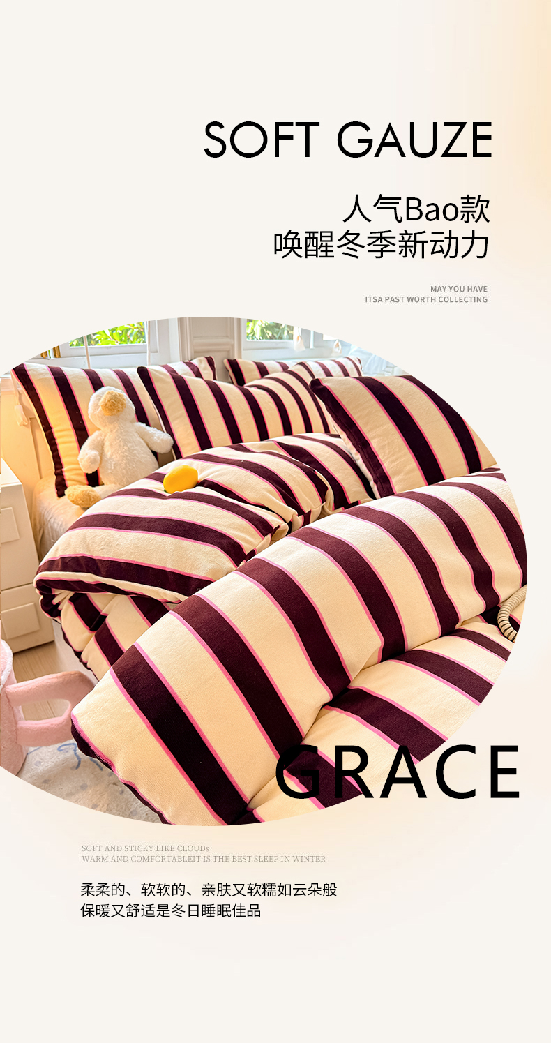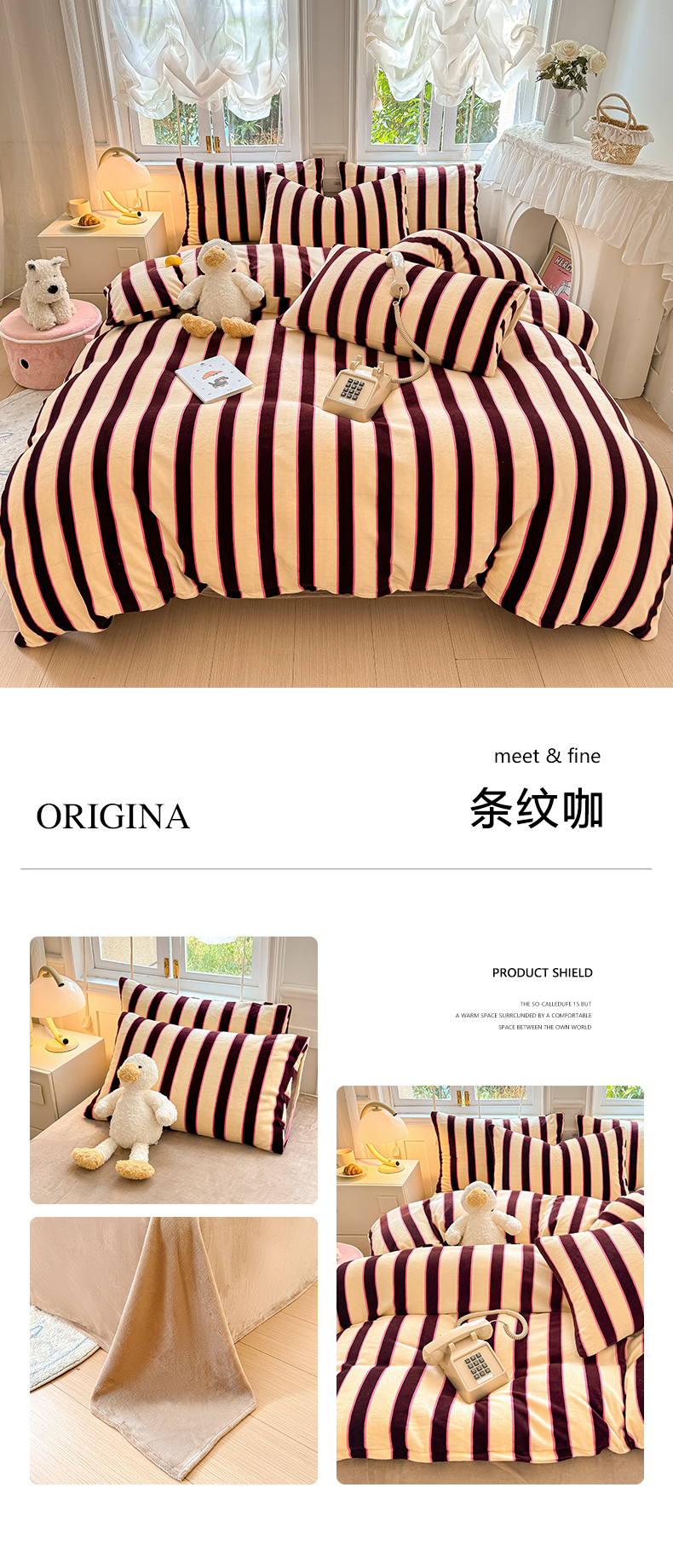 当前位置: 91家纺网 > 商品网购 > 床品套件 > 四件套 > 牛奶绒四件套 > 2025新款小清新双面牛奶绒四件套 条纹咖