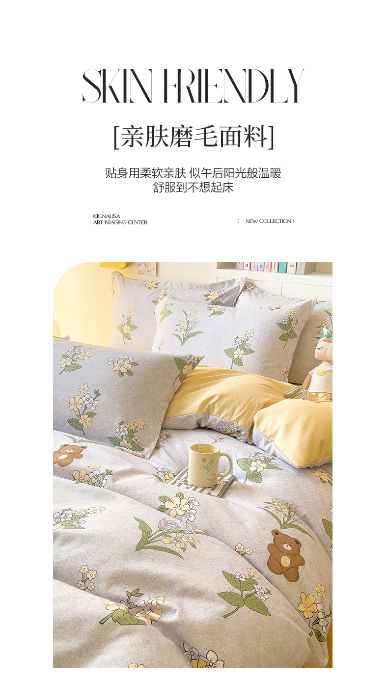 商品名称:许林 2025新款亲肤磨毛四件套 浅梦