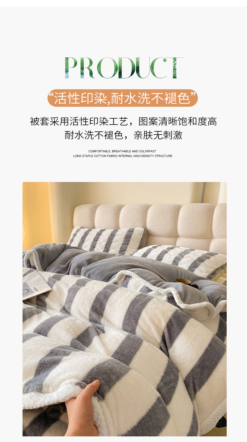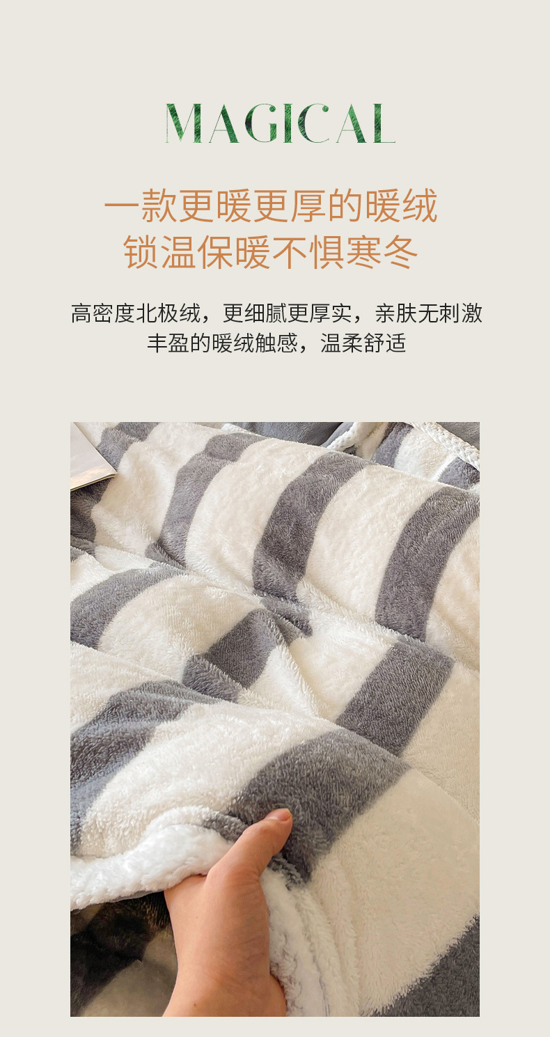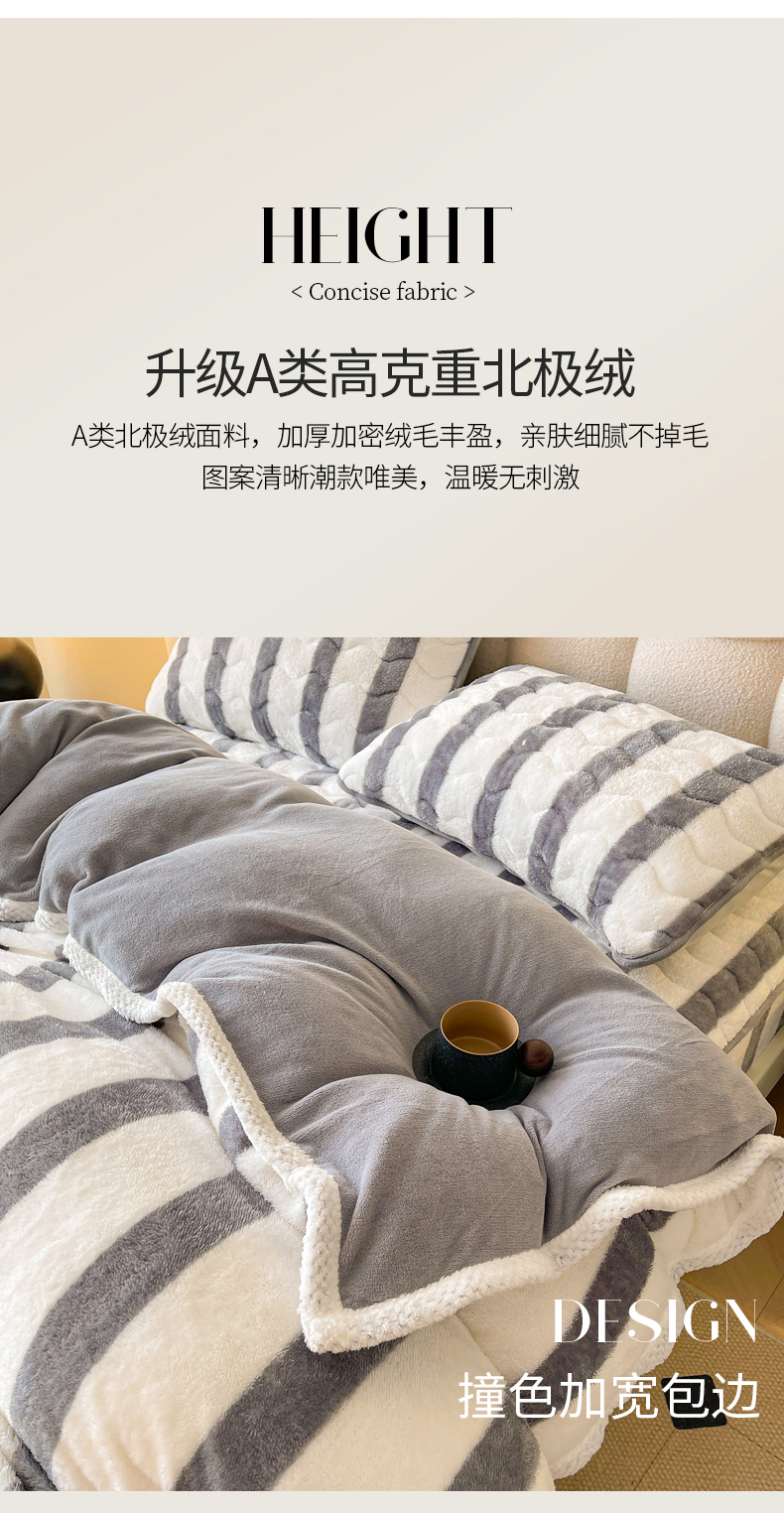 商品名称:2024新款A类北极绒格子-条纹系列宽包边加厚被套(暖光图) 条纹-灰色