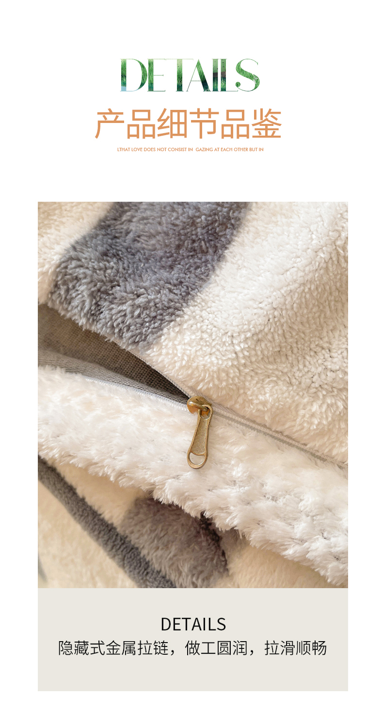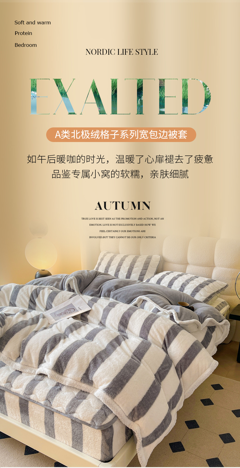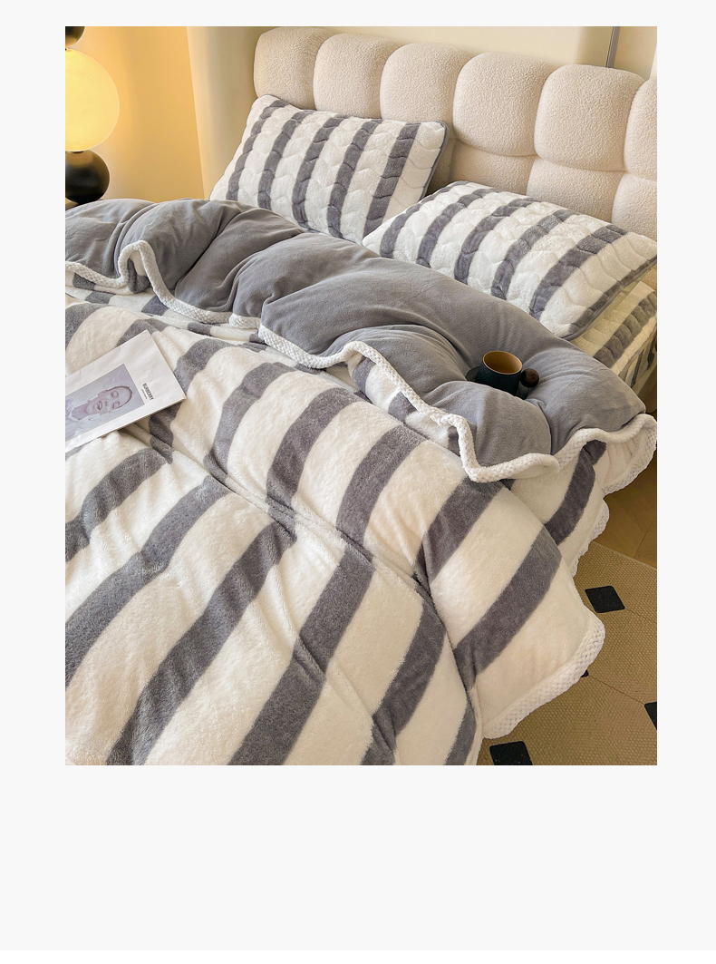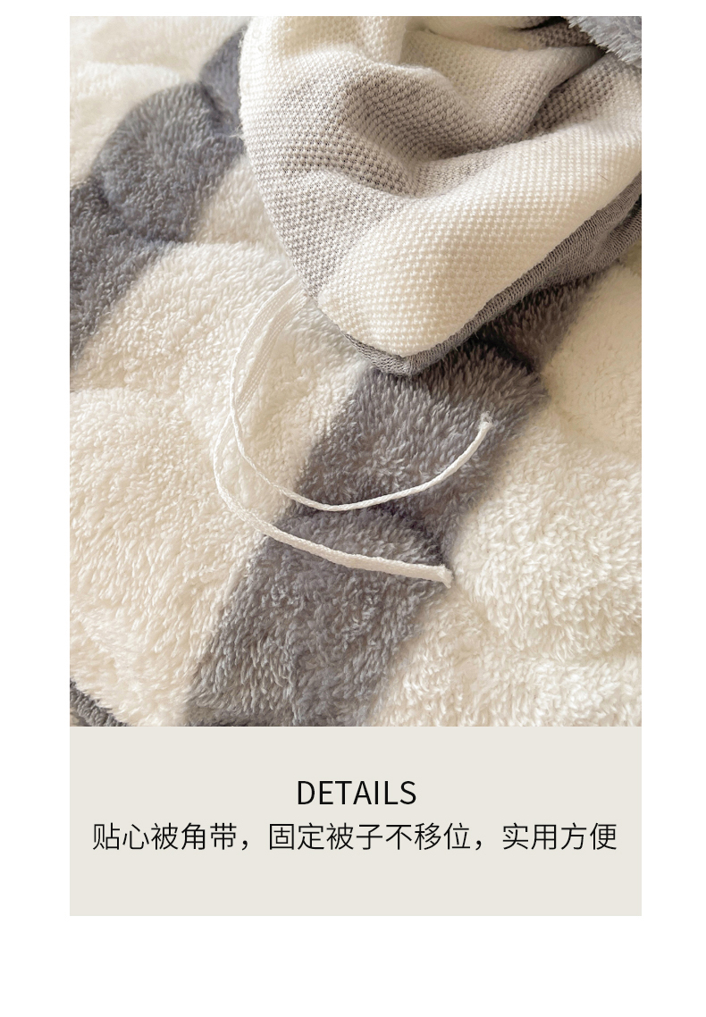 商品名称:2024新款A类北极绒格子-条纹系列宽包边加厚被套(暖光图) 条纹-灰色