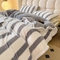 2024新款A类北极绒格子-条纹系列宽包边加厚被套(暖光图) 条纹-灰色