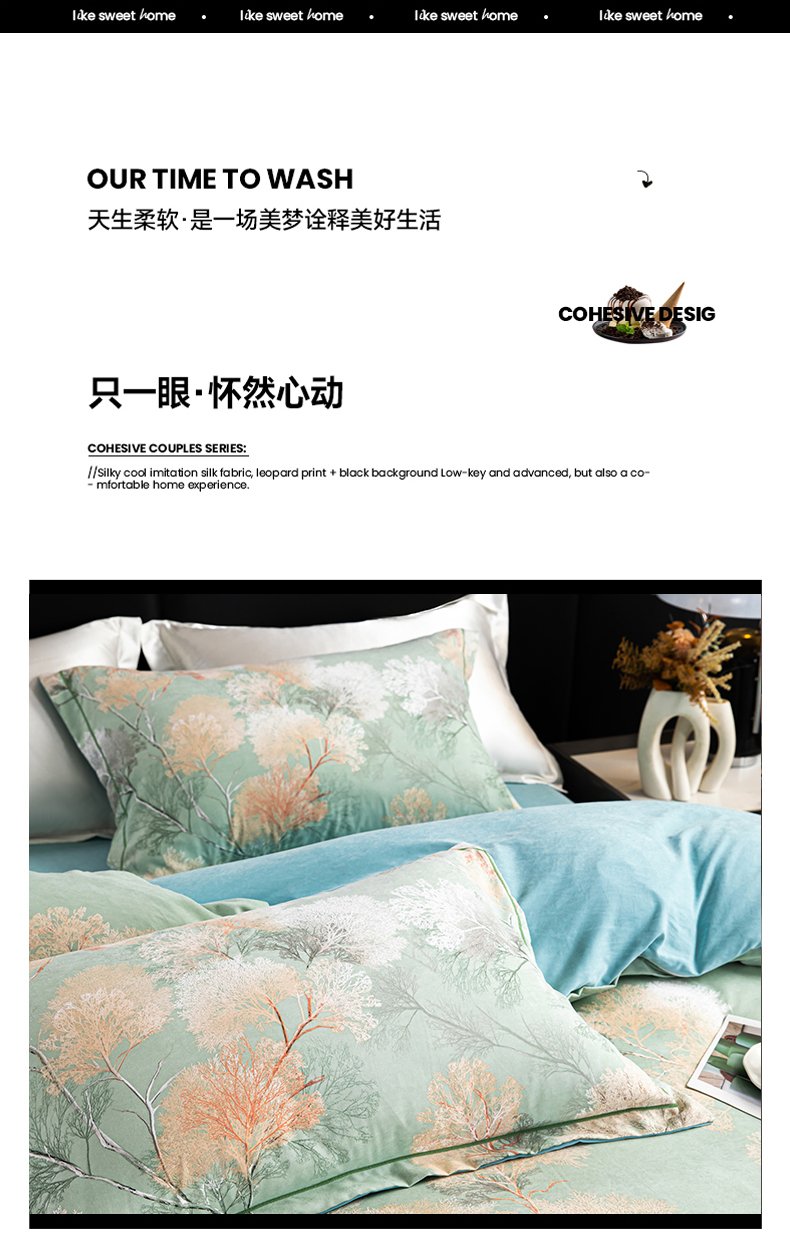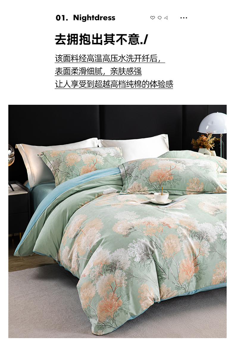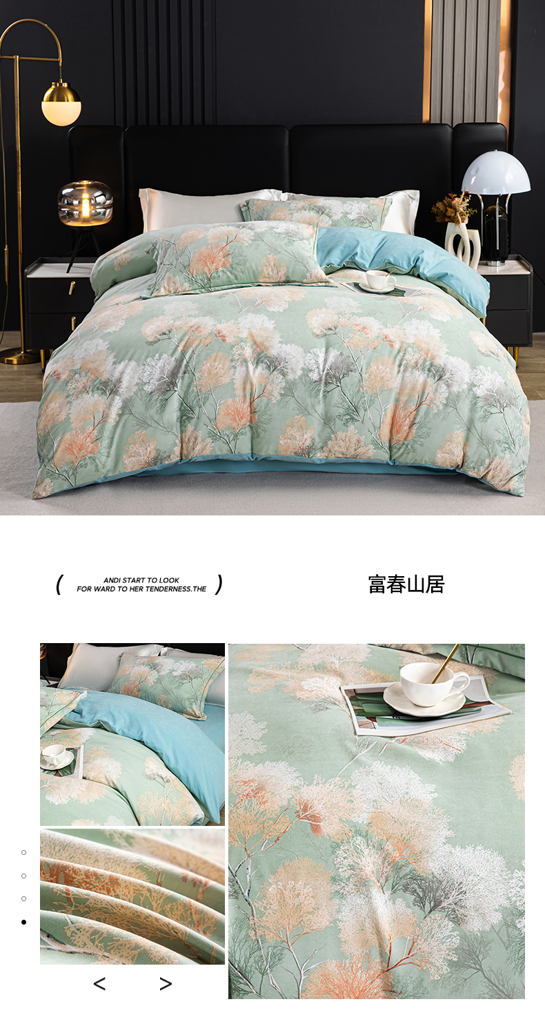 商品名称:美丽折家纺 2025新款A类8D数码百花锦四件套 富春山居