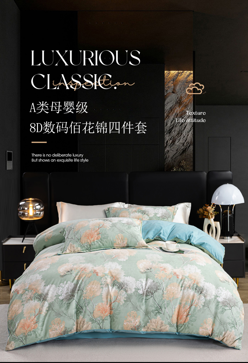 美丽折家纺 2025新款A类8D数码百花锦四件套 富春山居