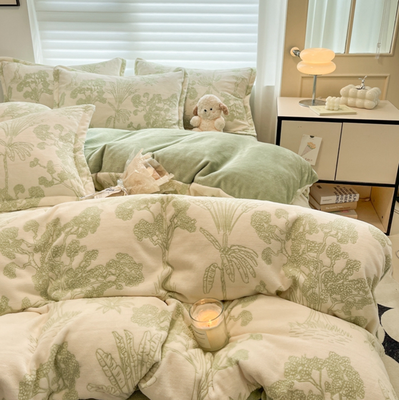 慕尚 2025新款高克重保暖双色雕花绒被套单件 花梦-绿
