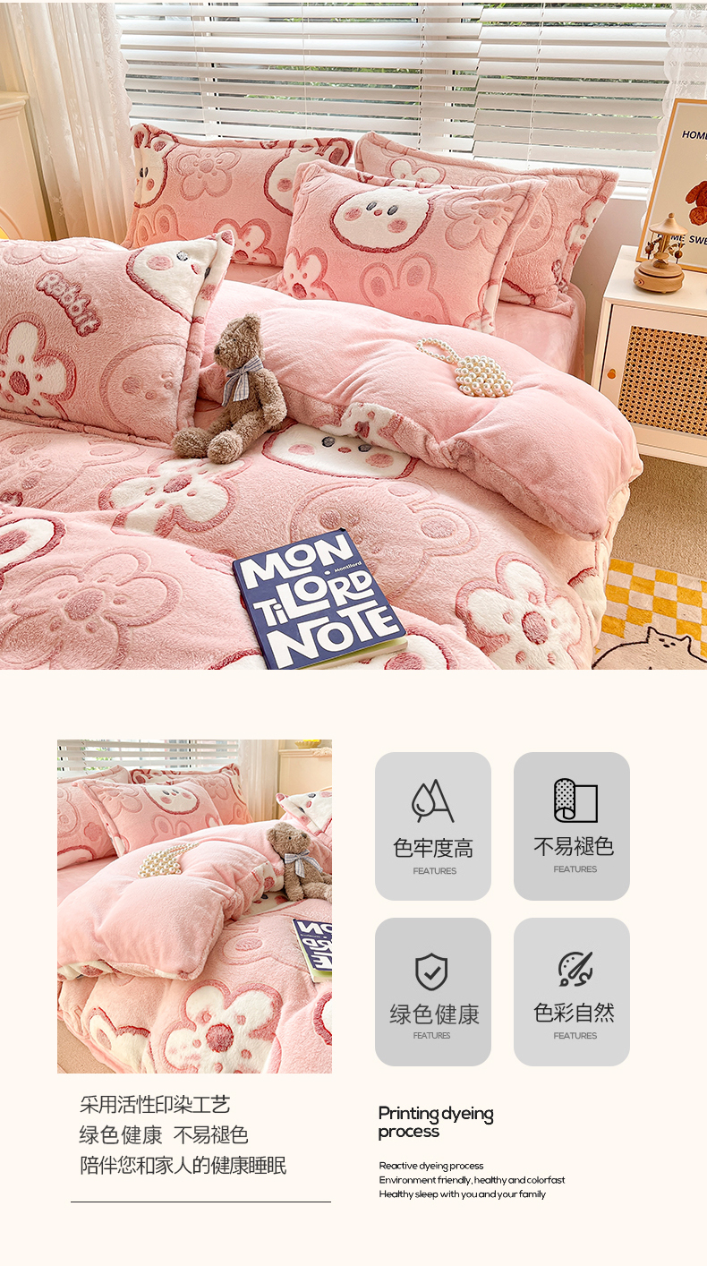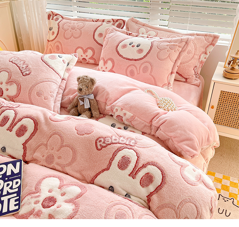当前位置: 91家纺网 > 商品网购 > 床品套件 > 四件套 > 牛奶绒四件套 > 慕尚 2025新款高克重印花雪花绒四件套 花花小兔
