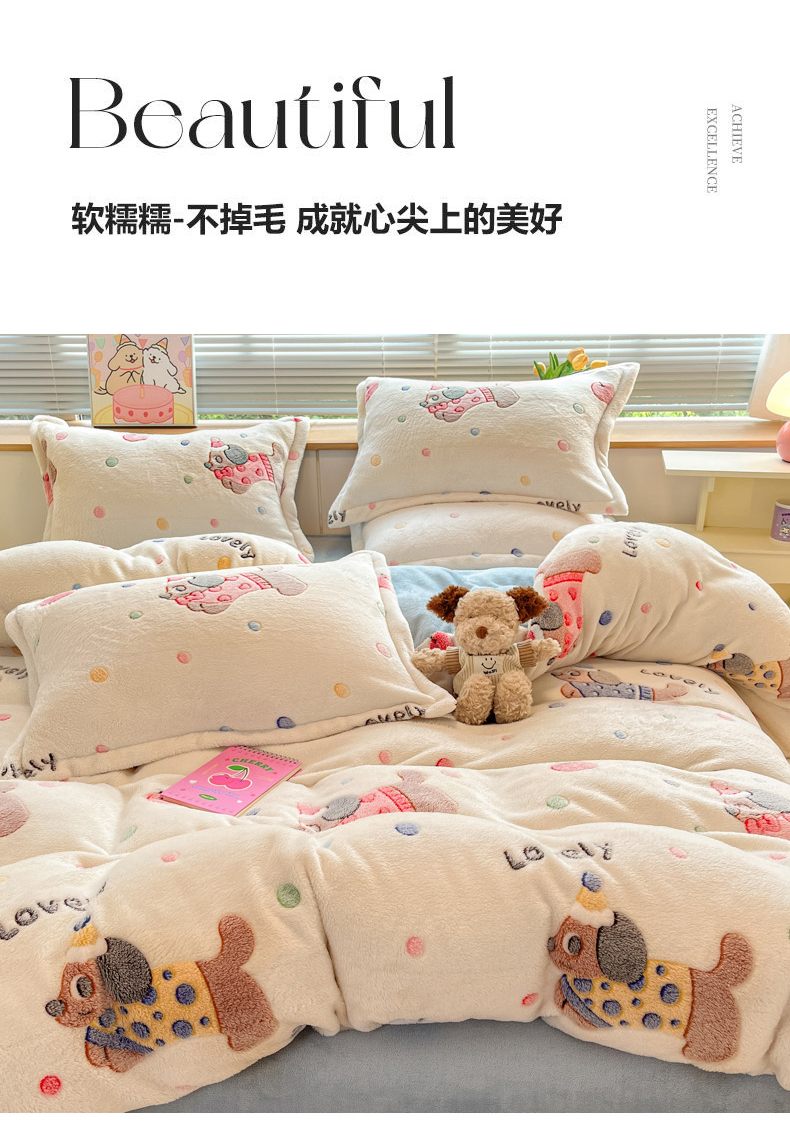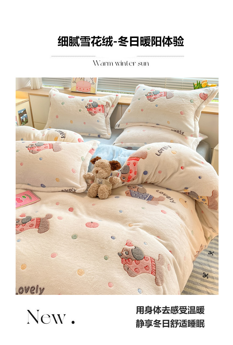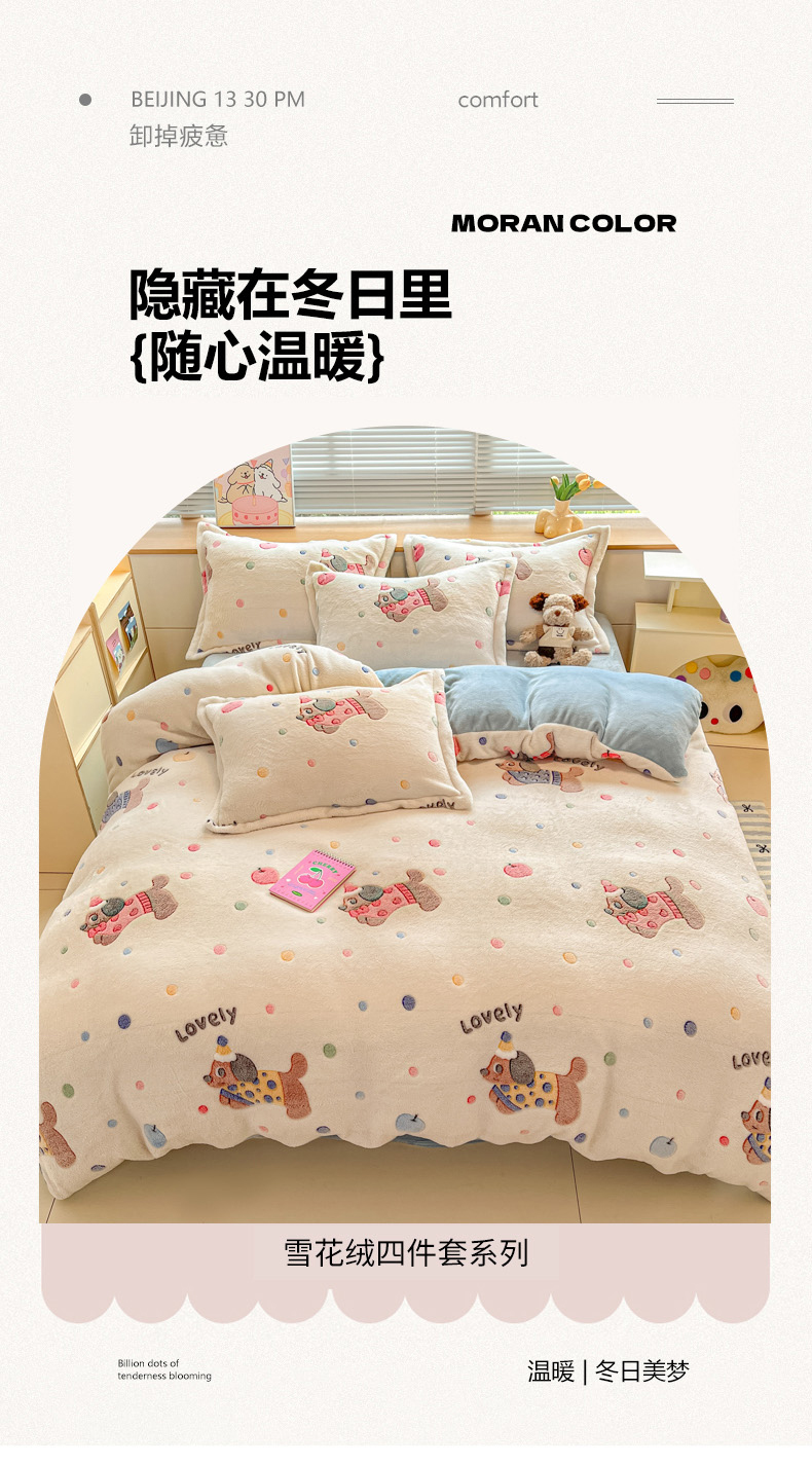 (总)慕尚家纺 2025新款豆豆绒刺绣四件套,大耳狗 白蓝,玫瑰 白粉