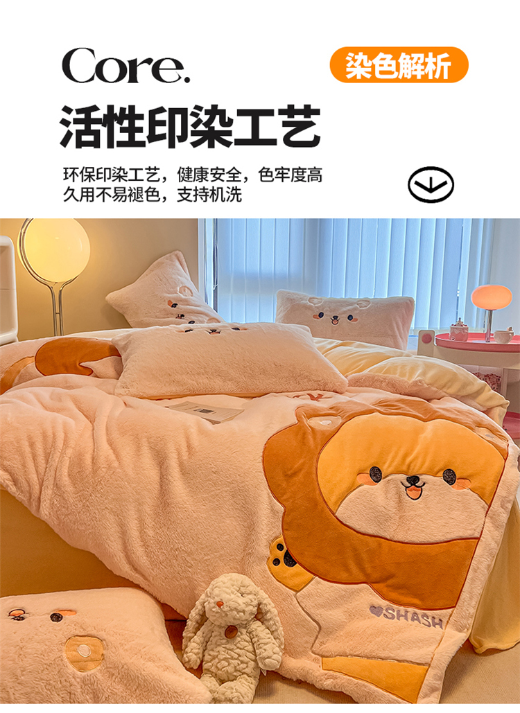 当前位置: 91家纺网 > 商品网购 > 床品套件 > 四件套 > 兔毛绒四件套 > 2024新款A类兔毛绒贴布绣四件套 小辛巴