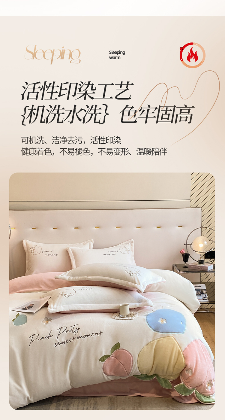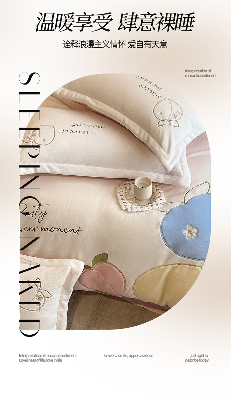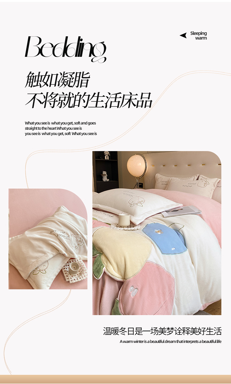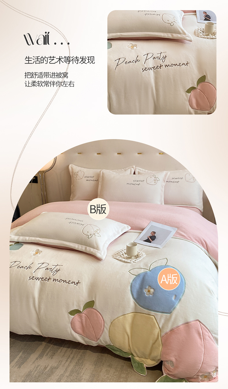 爱家(原缔乐家纺) 牛奶绒贴布绣四件套-蜜桃可可 蜜桃可可-奶昔白