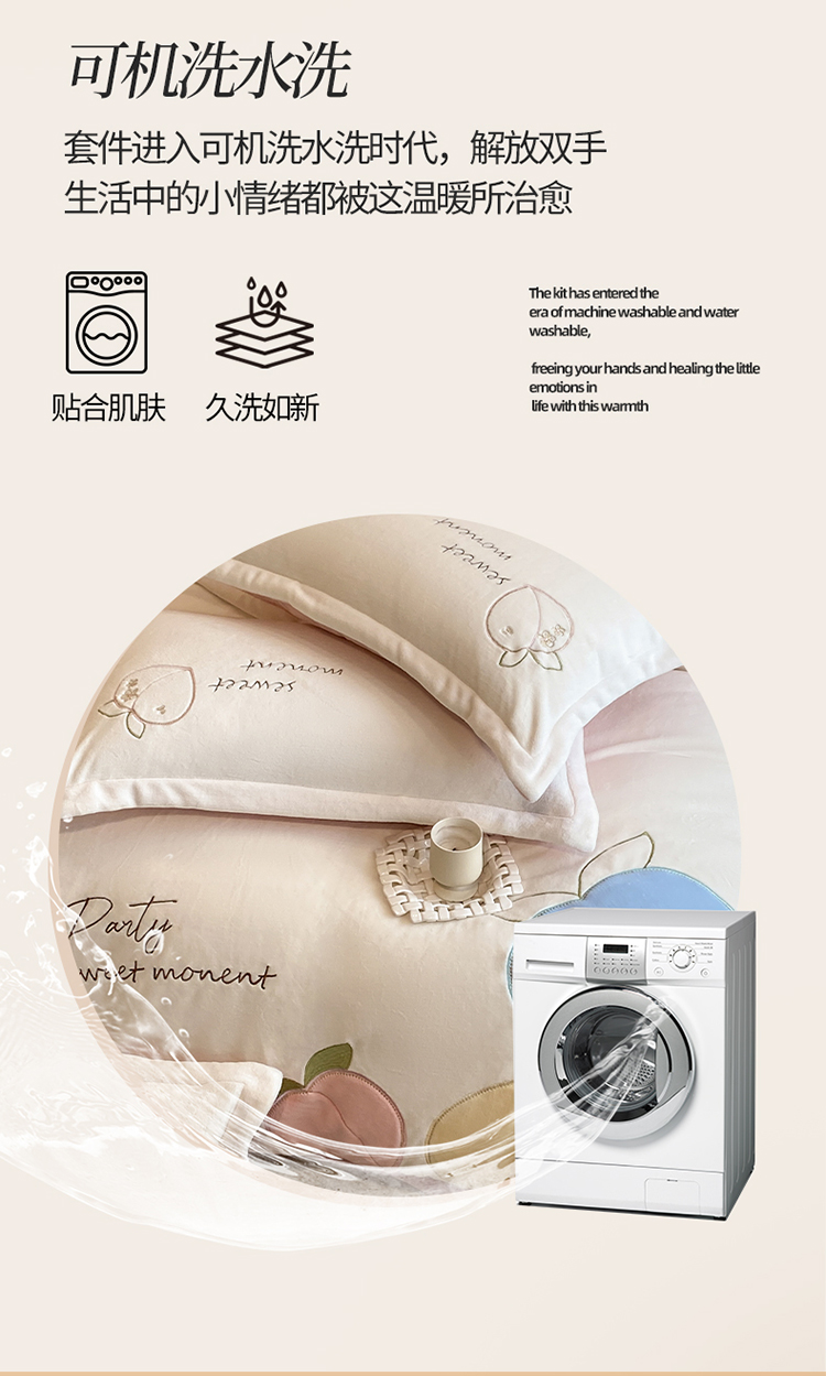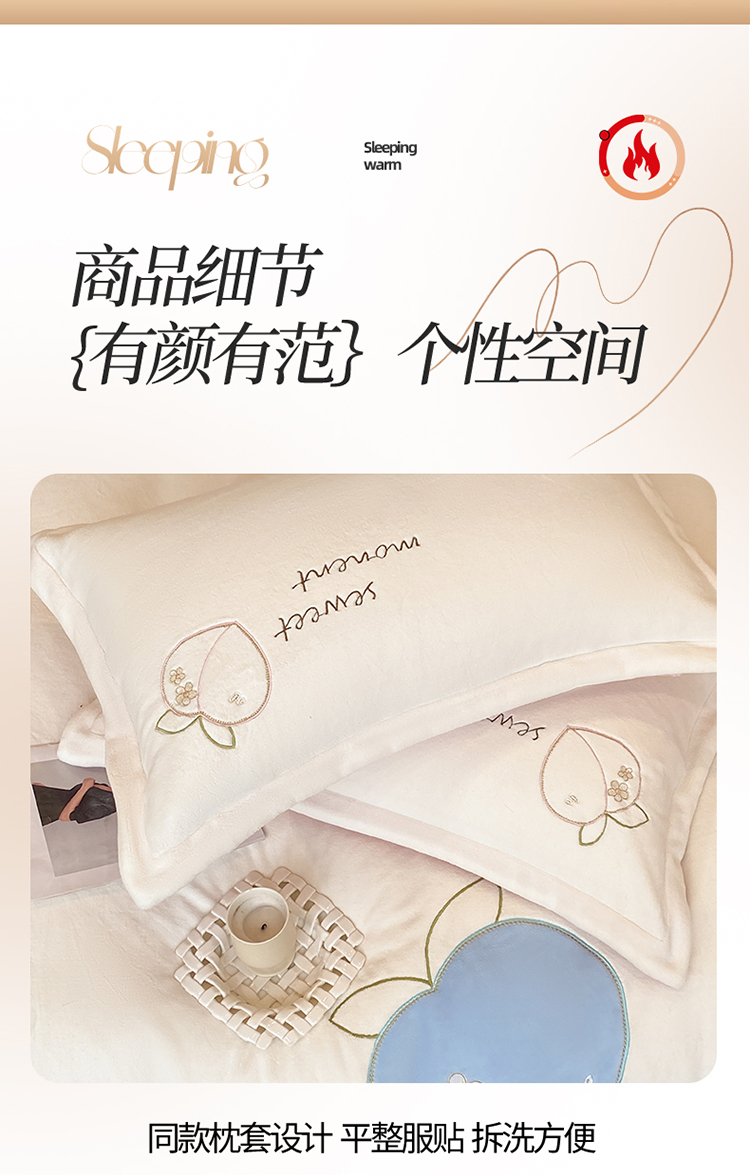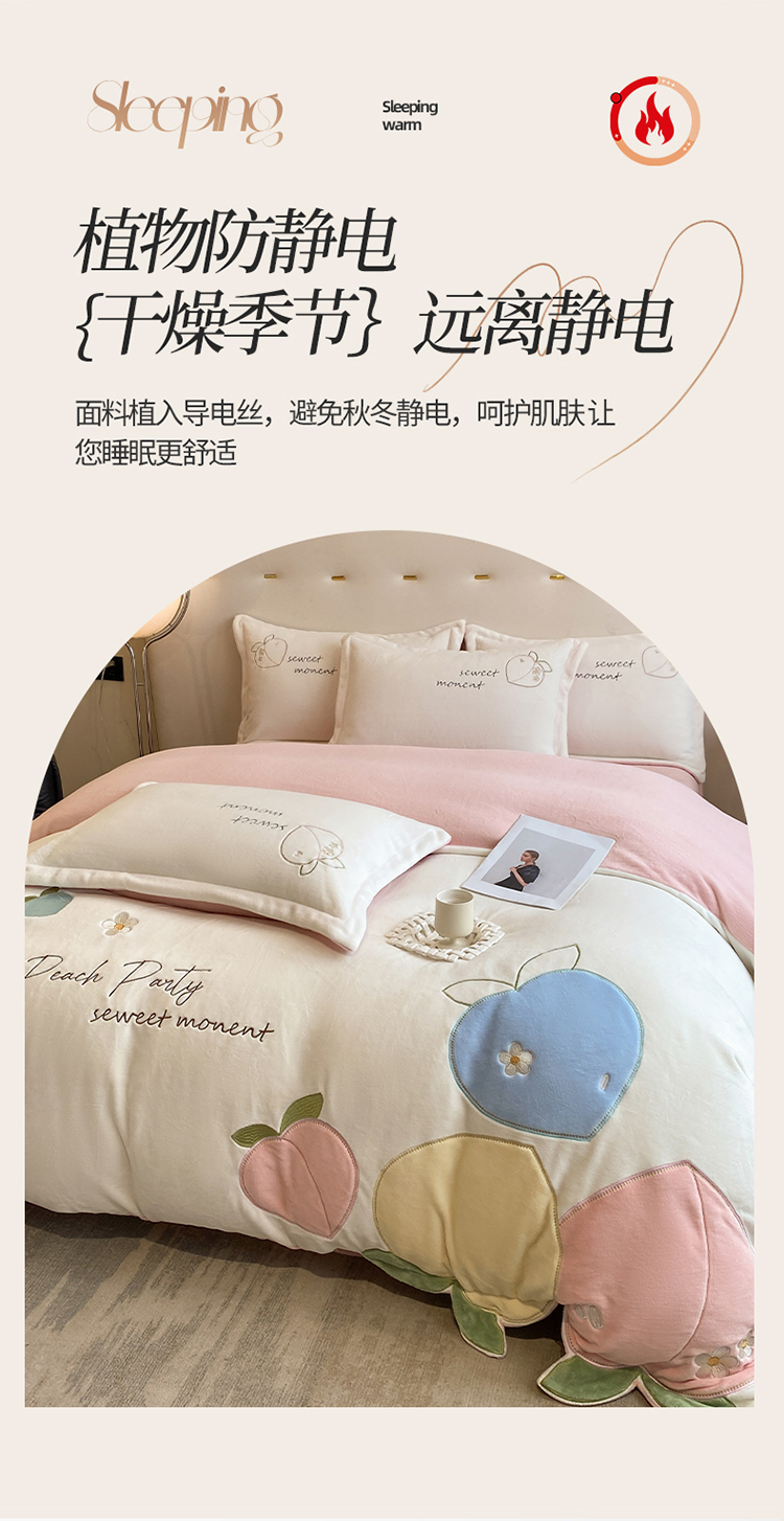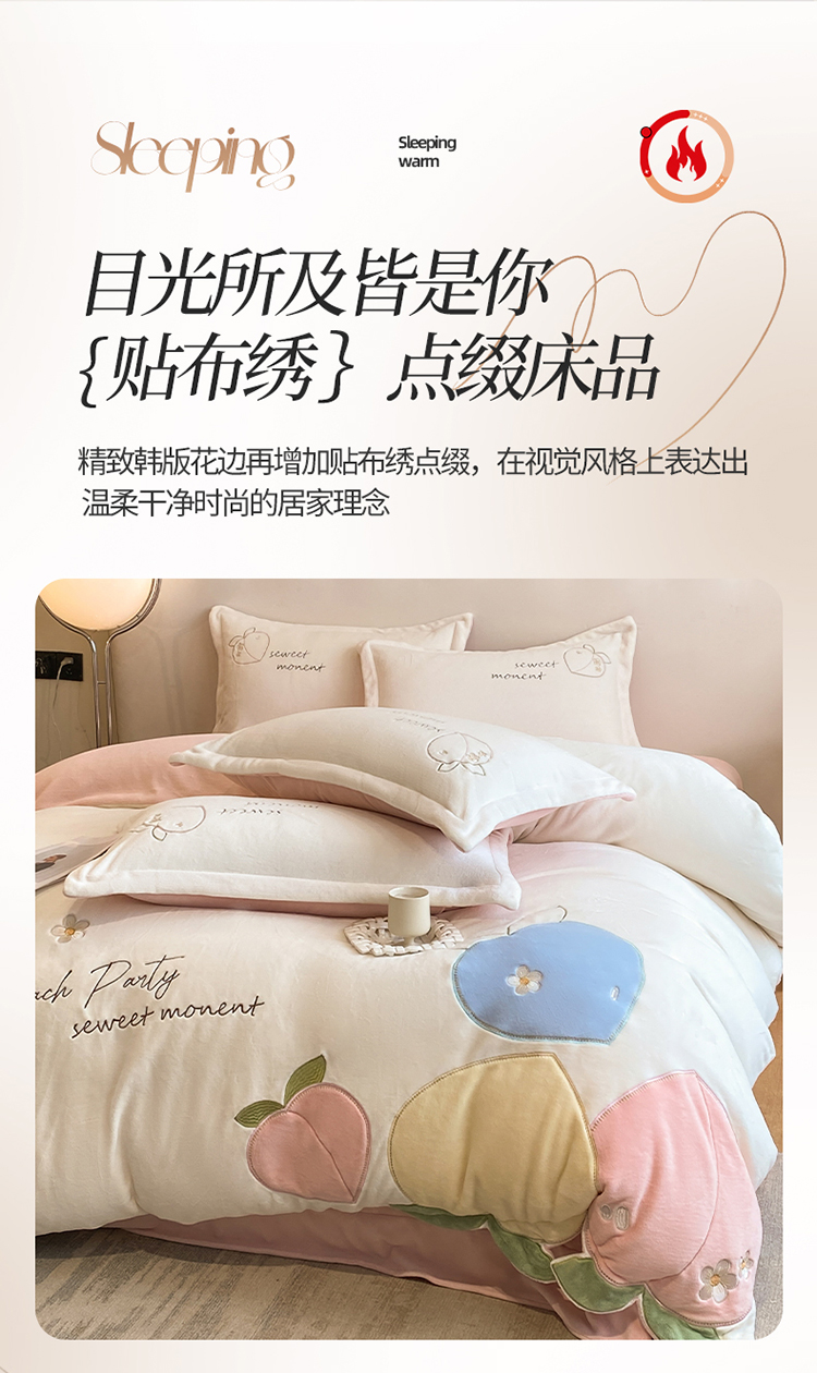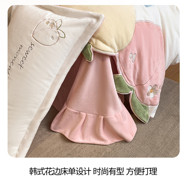 爱家(原缔乐家纺) 牛奶绒贴布绣四件套-蜜桃可可 蜜桃可可-奶昔白