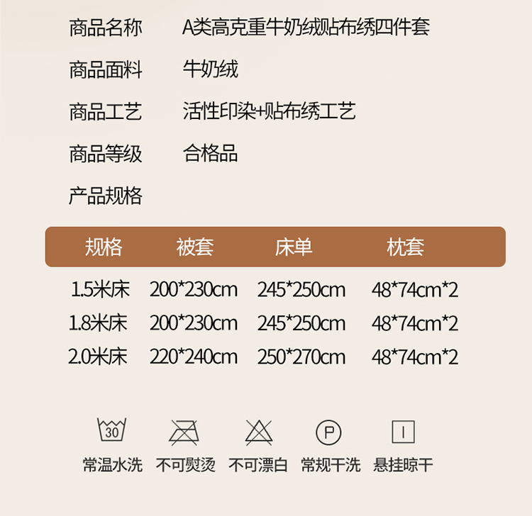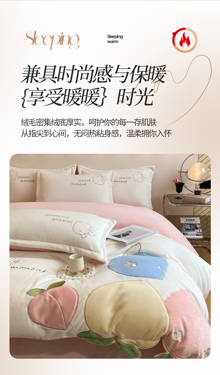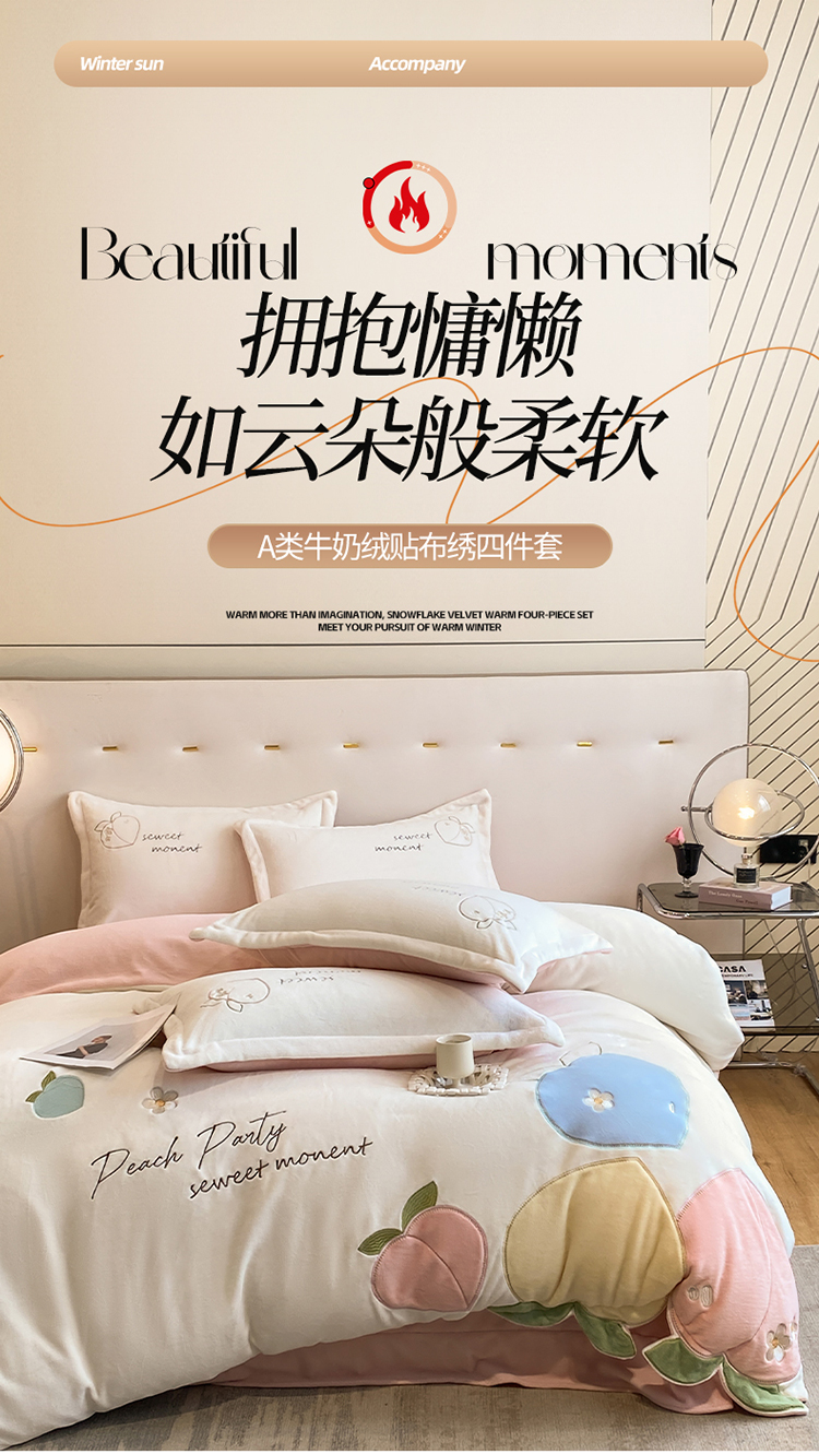 商品名称: 爱家(原缔乐家纺) 牛奶绒贴布绣四件套-蜜桃可可 蜜桃可可-奶昔白
