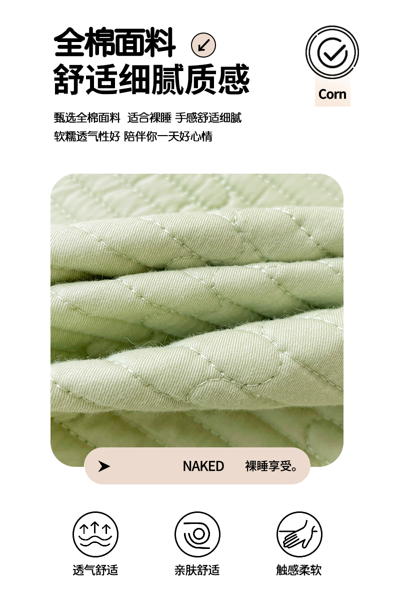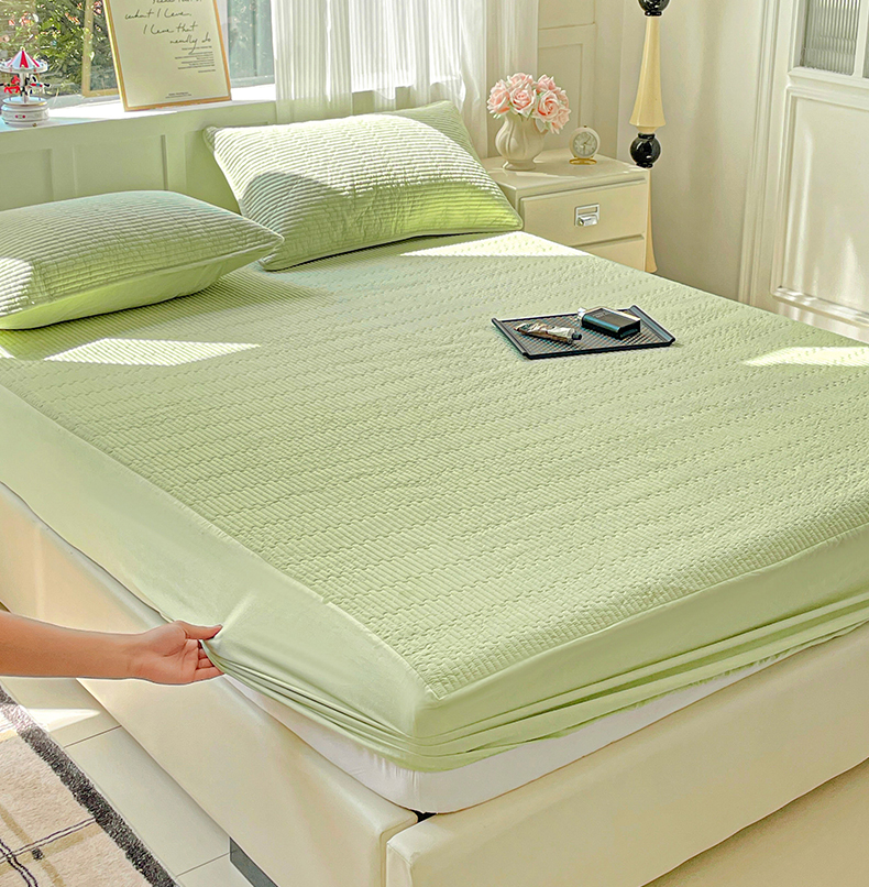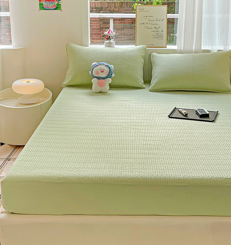 漫时光 2025新款40支全棉纯色夹棉床笠款 稚芽绿