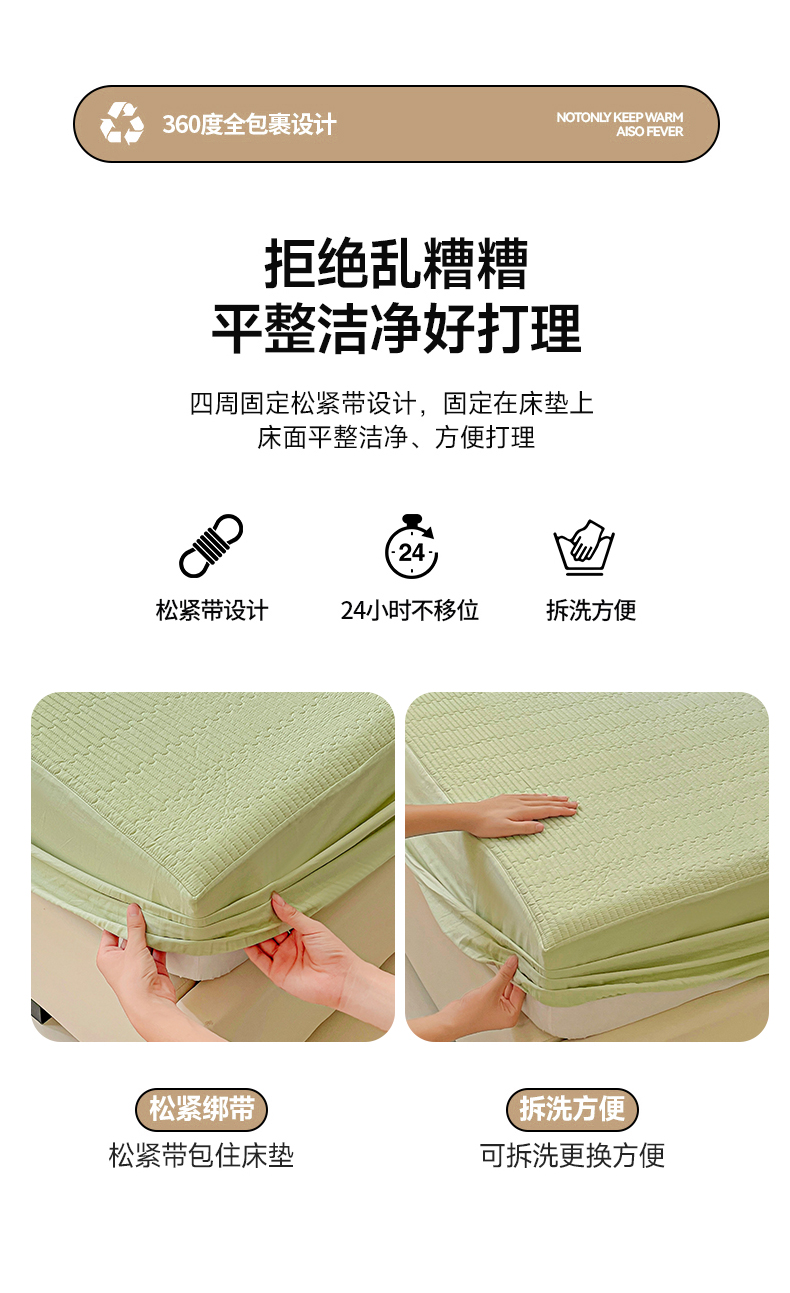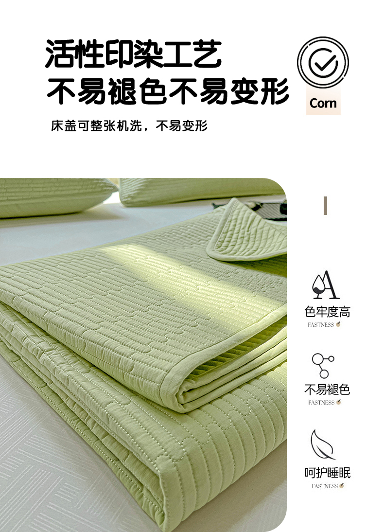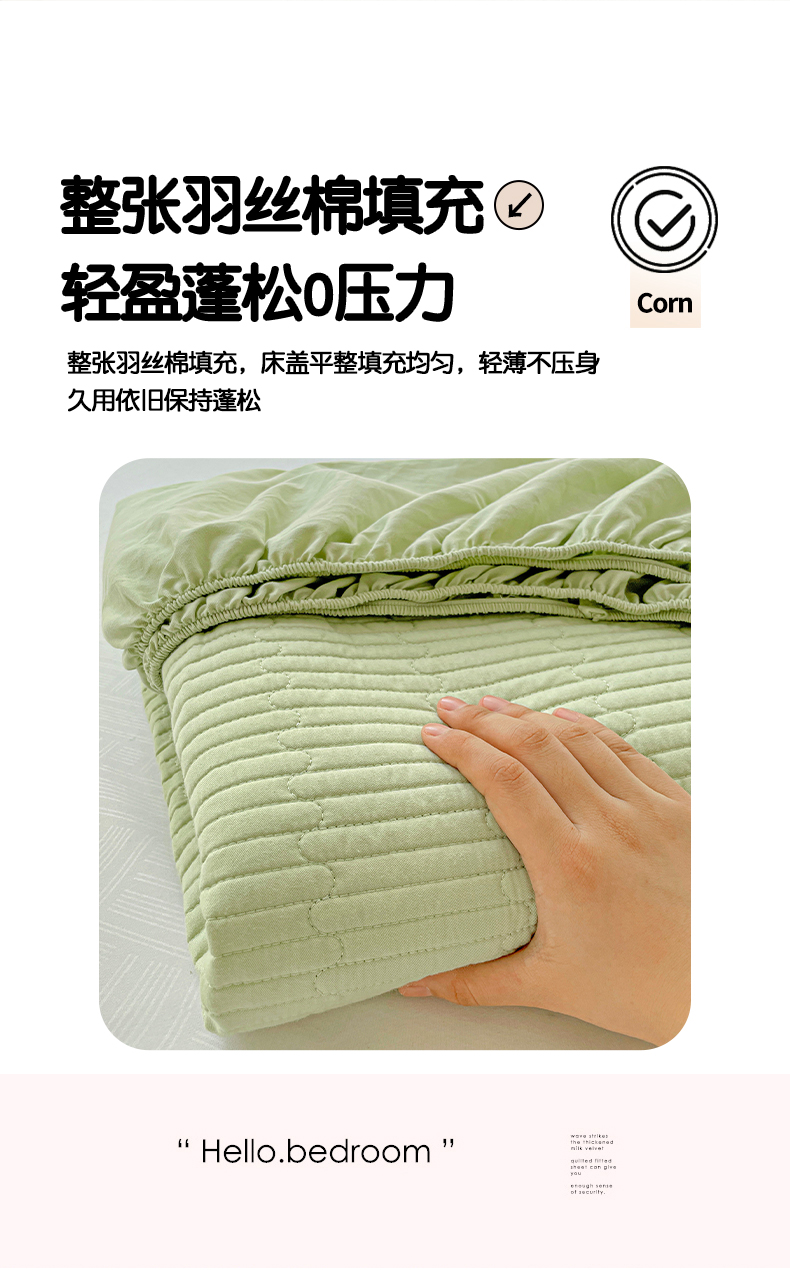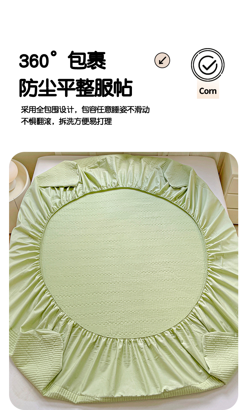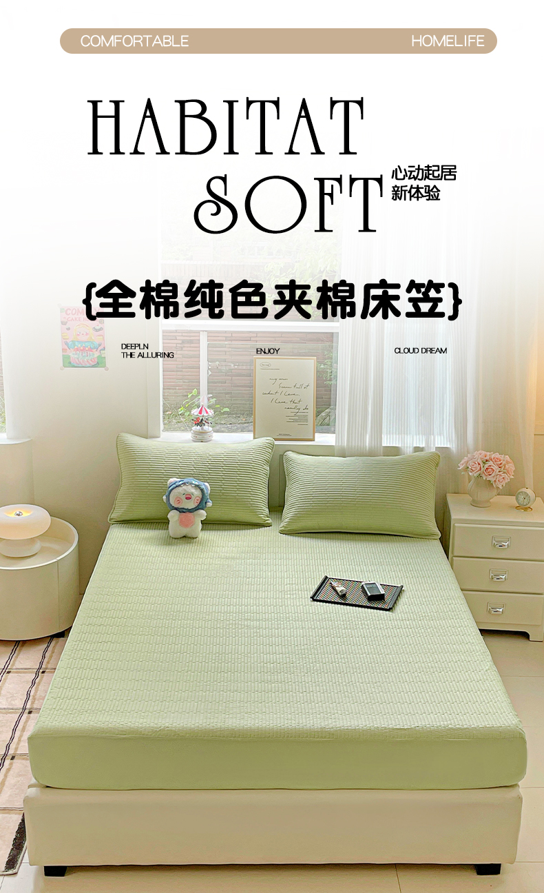 • 91家纺网 家纺一手货源 找家纺 漫时光 2025新款40支全棉纯色夹棉床笠款 稚芽绿