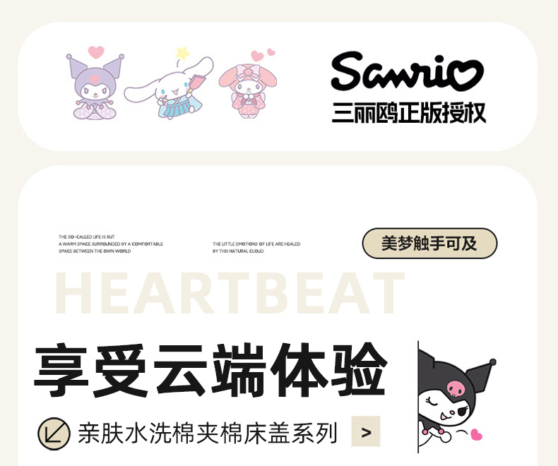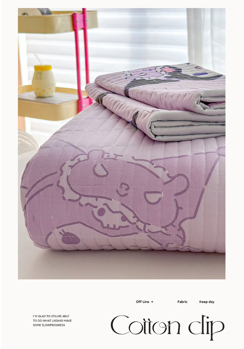 • 91家纺网 家纺一手货源 找家纺 梵克保罗 2024新款亲肤水洗棉卡通三丽鸥床盖三件套 方格美乐蒂