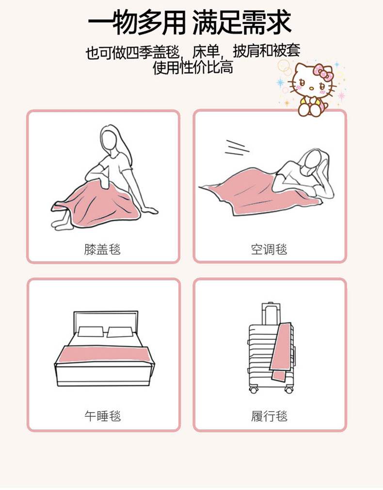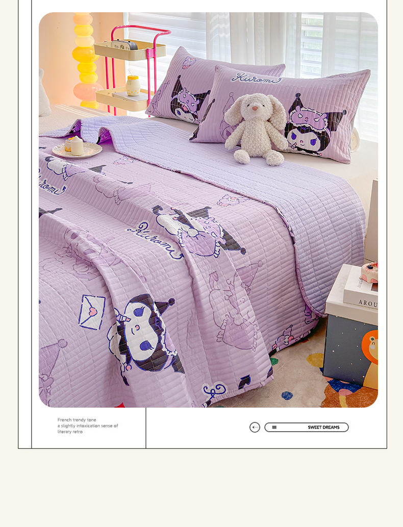 当前位置: 91家纺网 > 商品网购 > 床上用品 > 床盖 > 梵克保罗 2024新款亲肤水洗棉卡通三丽鸥床盖三件套 方格美乐蒂