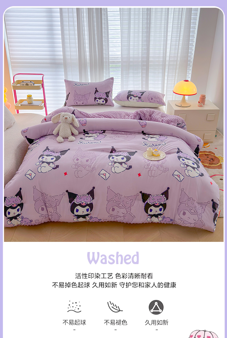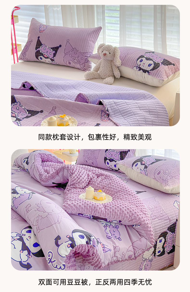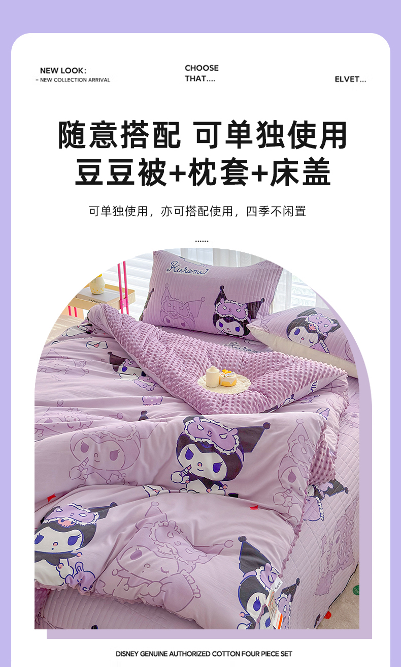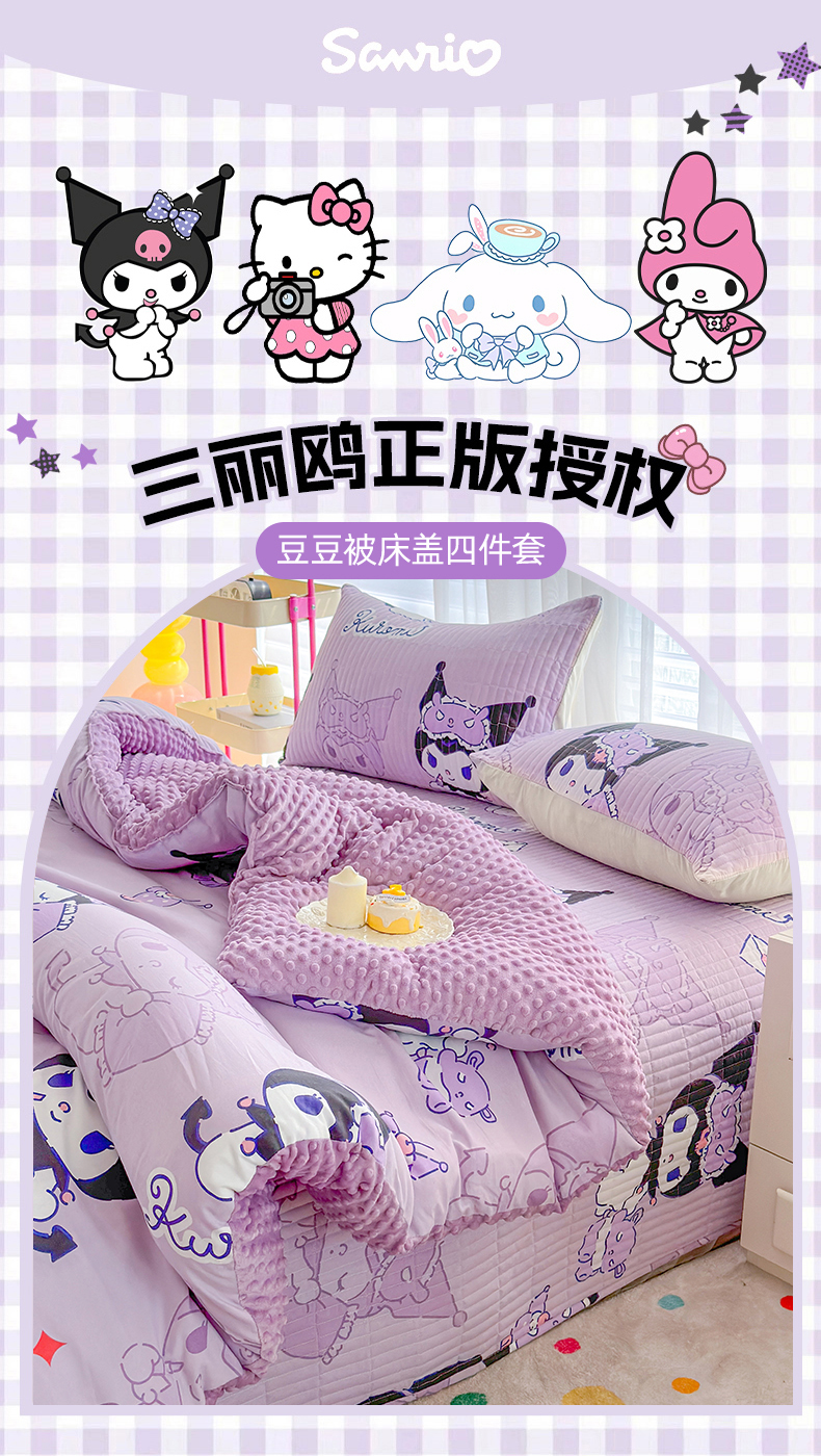 当前位置: 91家纺网 > 商品网购 > 床品套件 > 四件套 > 其它四件套 > 梵克保罗 2024新款水洗棉豆豆被床盖四件套 紫色库洛米