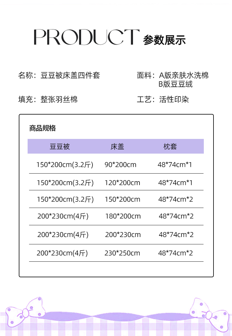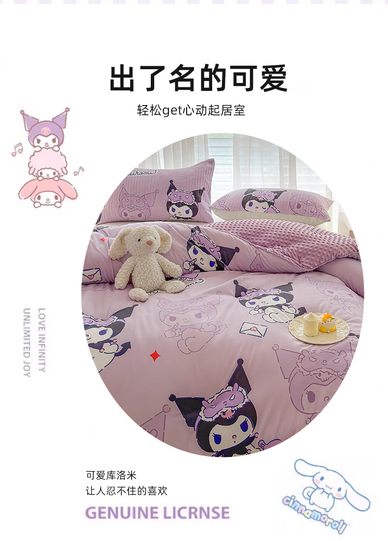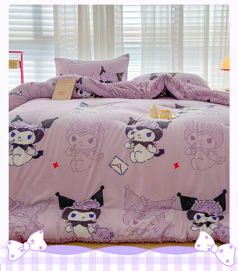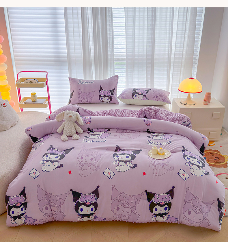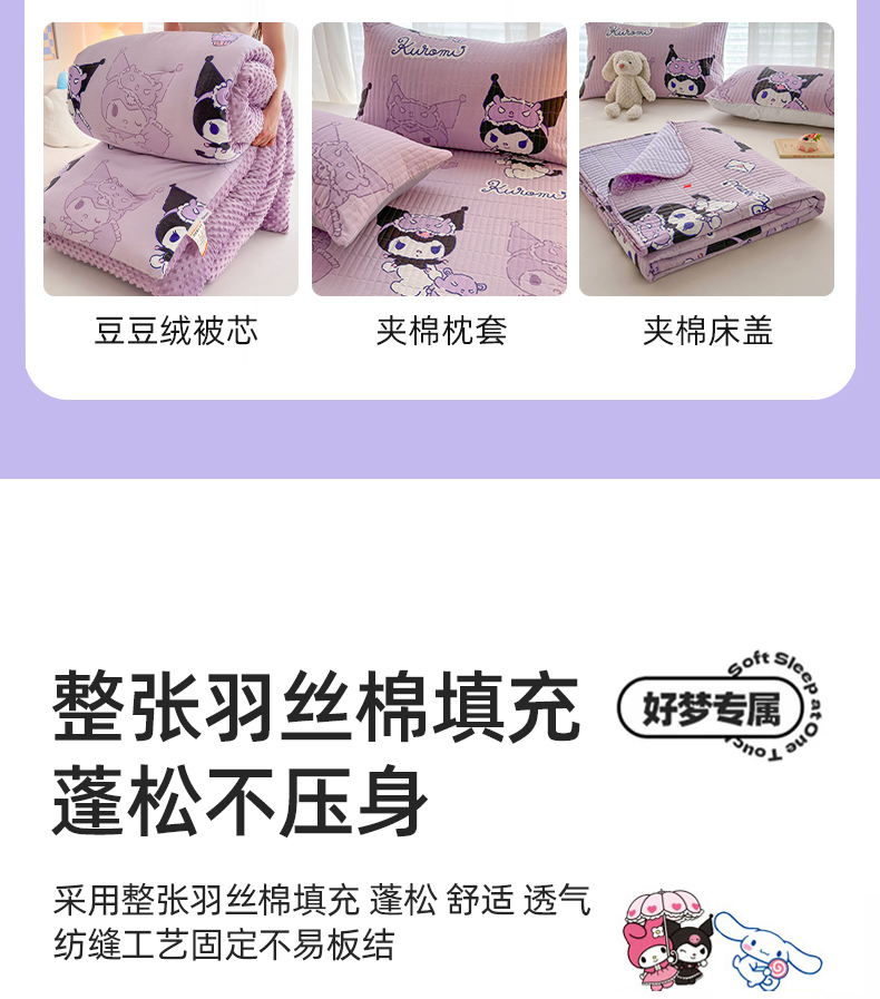 当前位置: 91家纺网 > 商品网购 > 床品套件 > 四件套 > 其它四件套 > 梵克保罗 2024新款水洗棉豆豆被床盖四件套 紫色库洛米