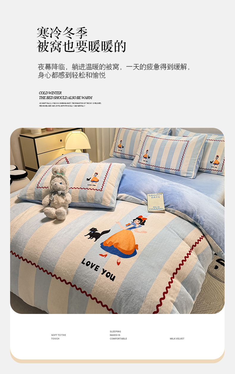 经年 2025新款大版卡通牛奶绒四件套-猫系少女系列 猫系少女-紫粉