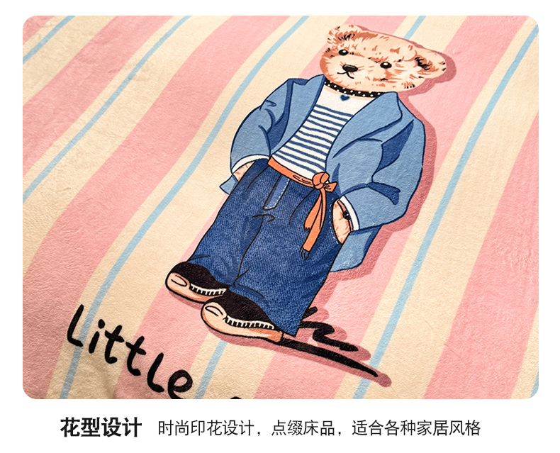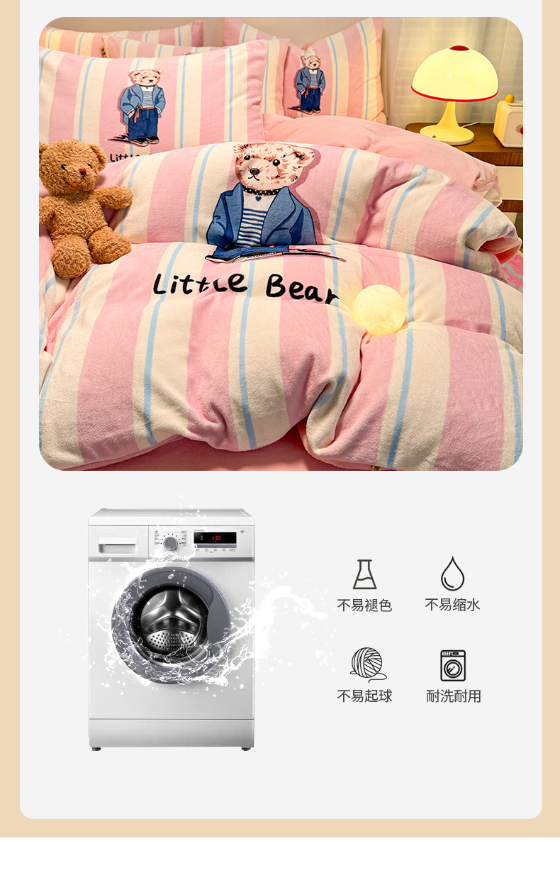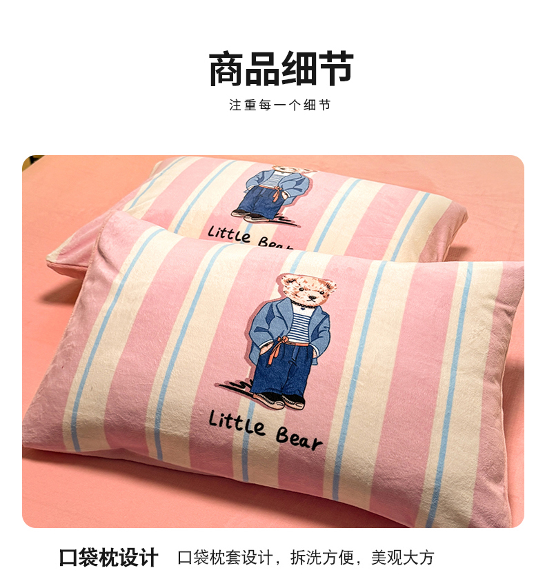 商品名称:经年 2025新款大版卡通牛奶绒四件套-玩酷熊系列 玩酷熊-粉
