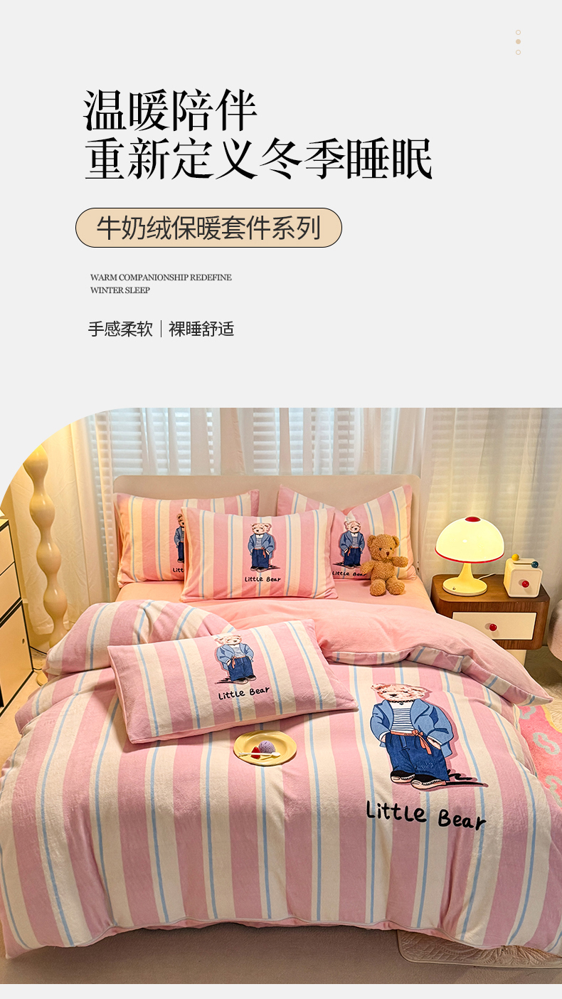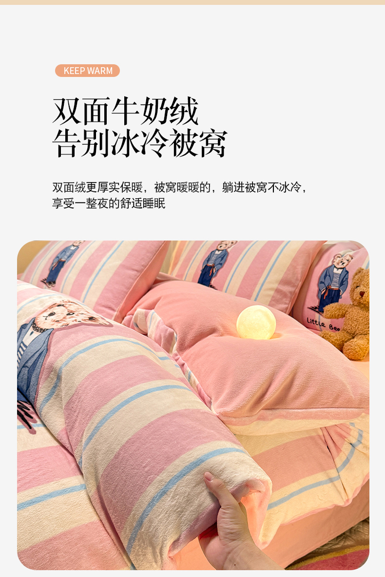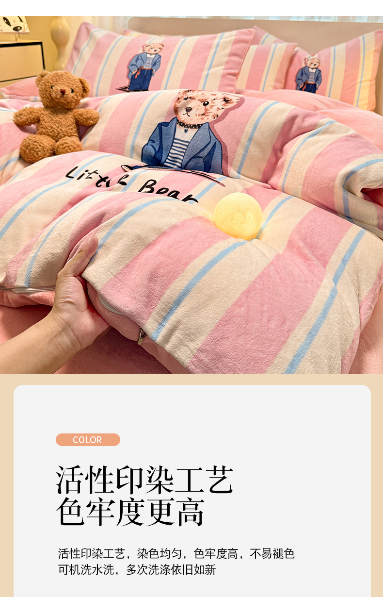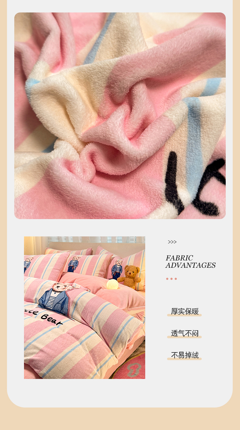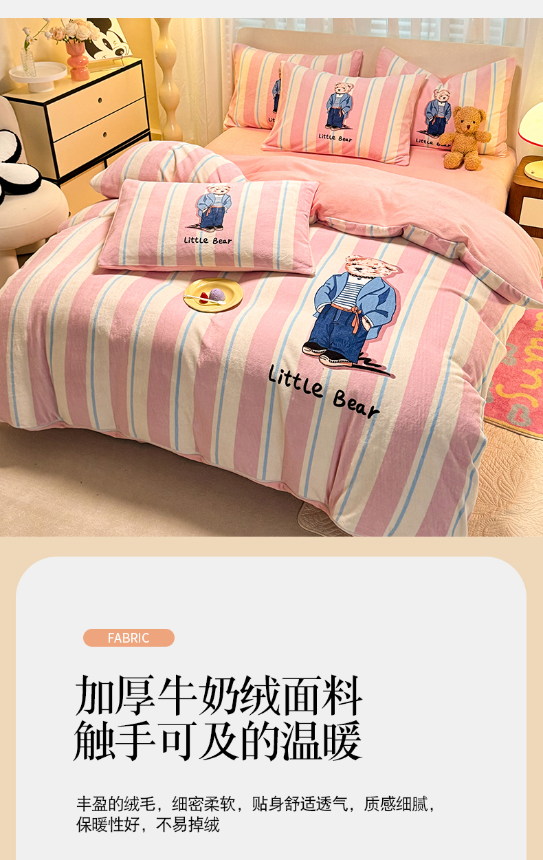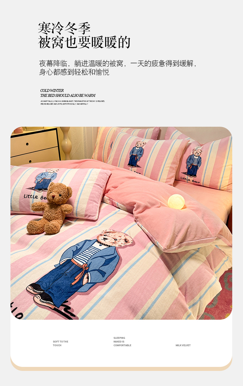 经年 2025新款大版卡通牛奶绒四件套-玩酷熊系列 玩酷熊-粉