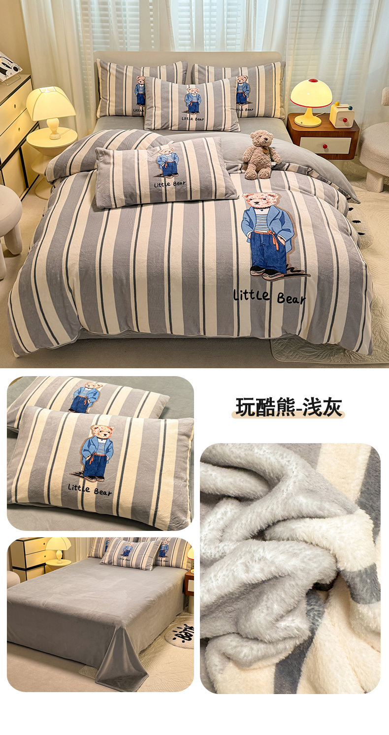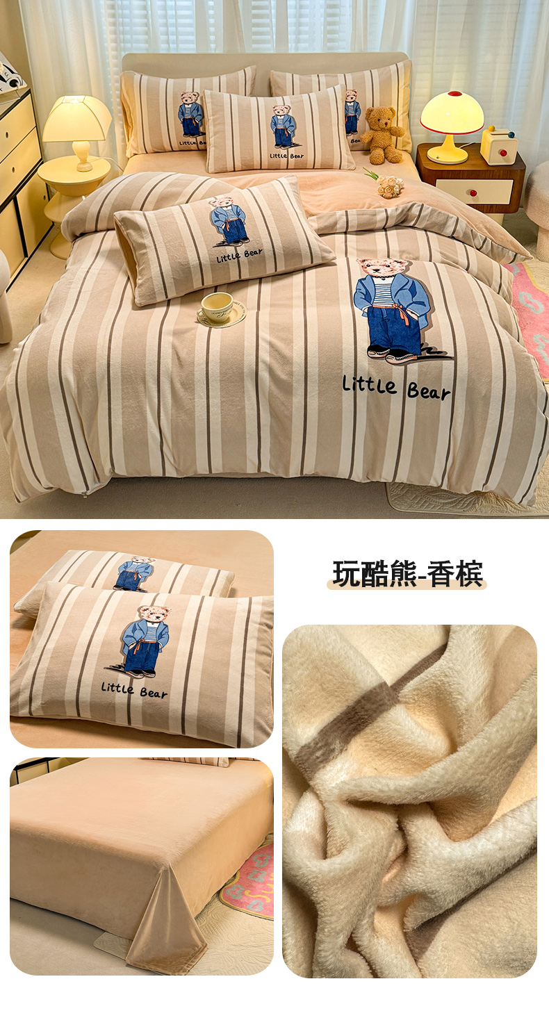(总)经年 2025新款大版卡通牛奶绒四件套-4款,玩酷熊-粉,玩酷熊-蓝,玩酷熊-浅灰,玩酷熊-香槟,猫系少女-蓝,猫系少女-亮粉,猫系少女-紫,猫系少女-紫粉,快乐小狗-香槟,快乐小狗-蓝色,快乐小狗-咖啡,快乐小狗-粉,滑板猫-酒红,滑板猫-粉,滑板猫-咖啡,滑板猫-蓝,滑板猫-香槟
