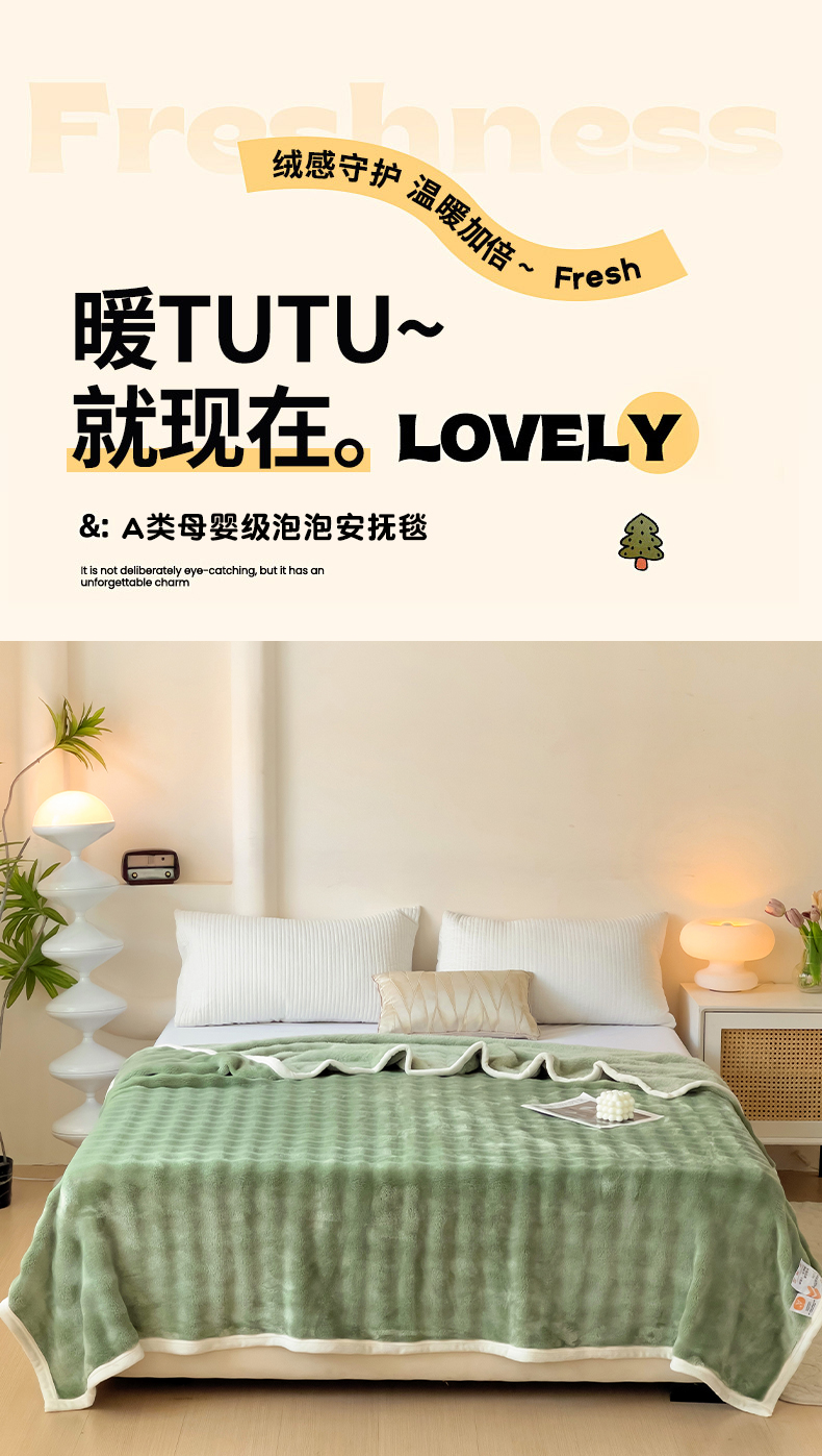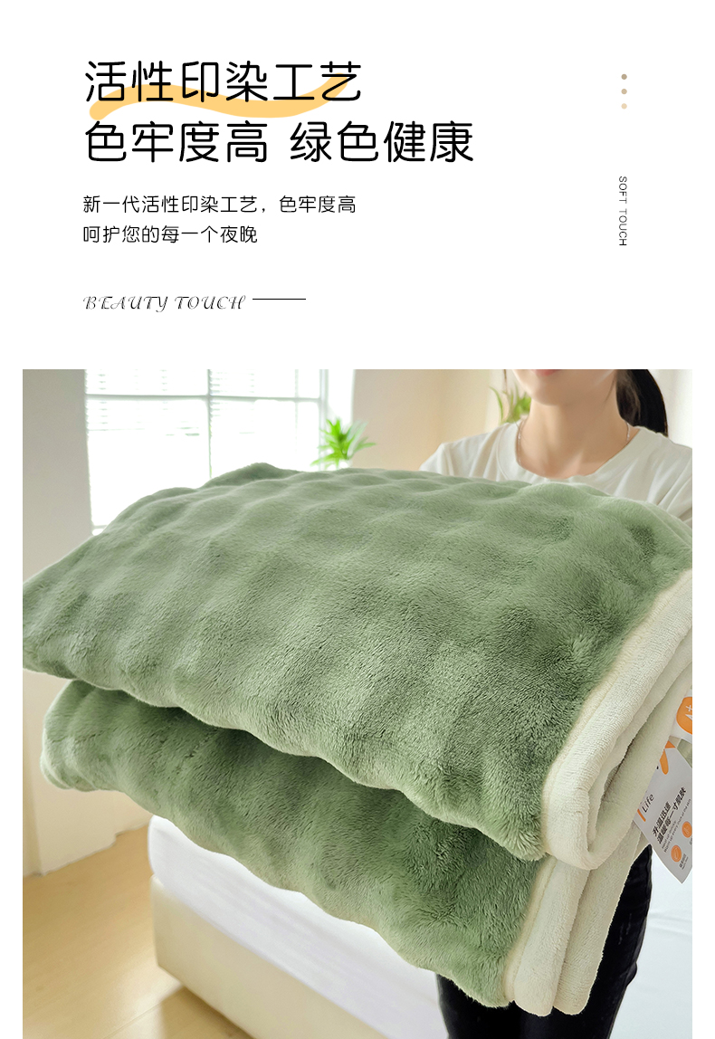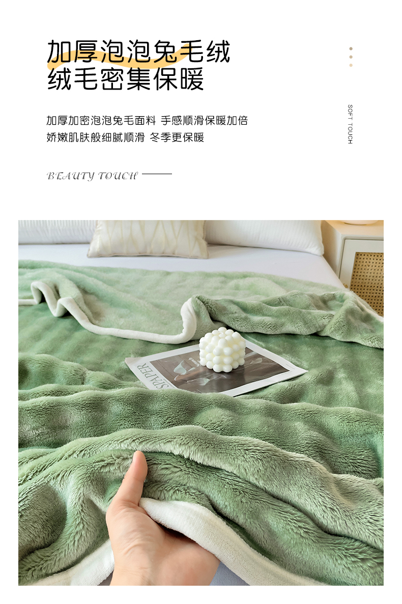 商品名称:优选 2025新款托卡斯母婴级兔兔绒大泡泡毛毯安抚四季床盖双面牛奶绒床单 泡泡兔毛绒-奶绿