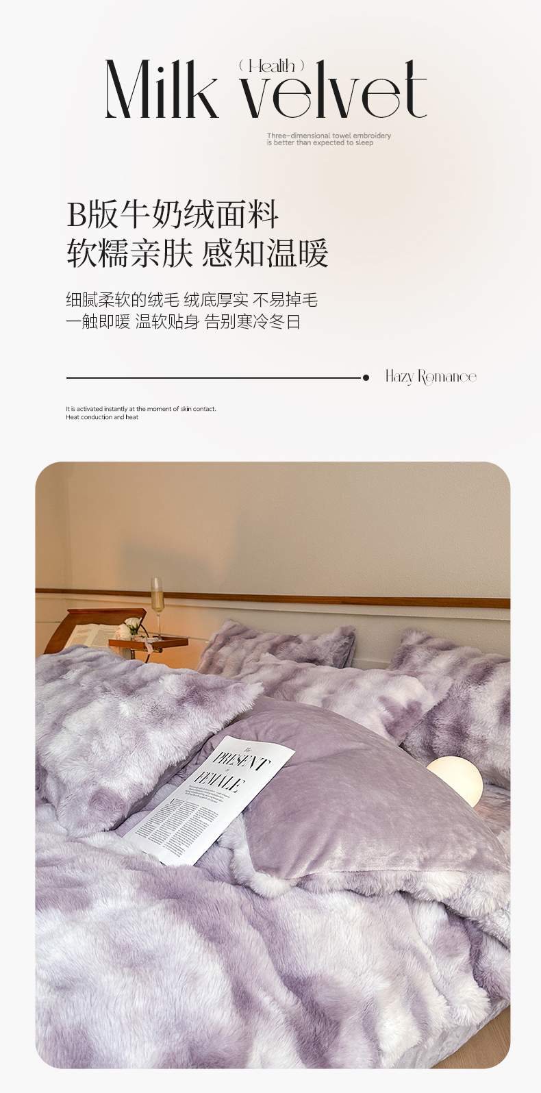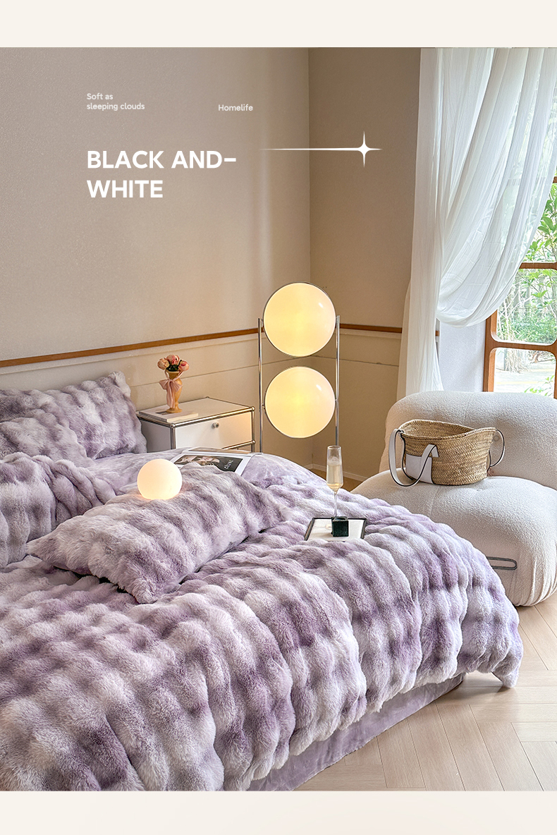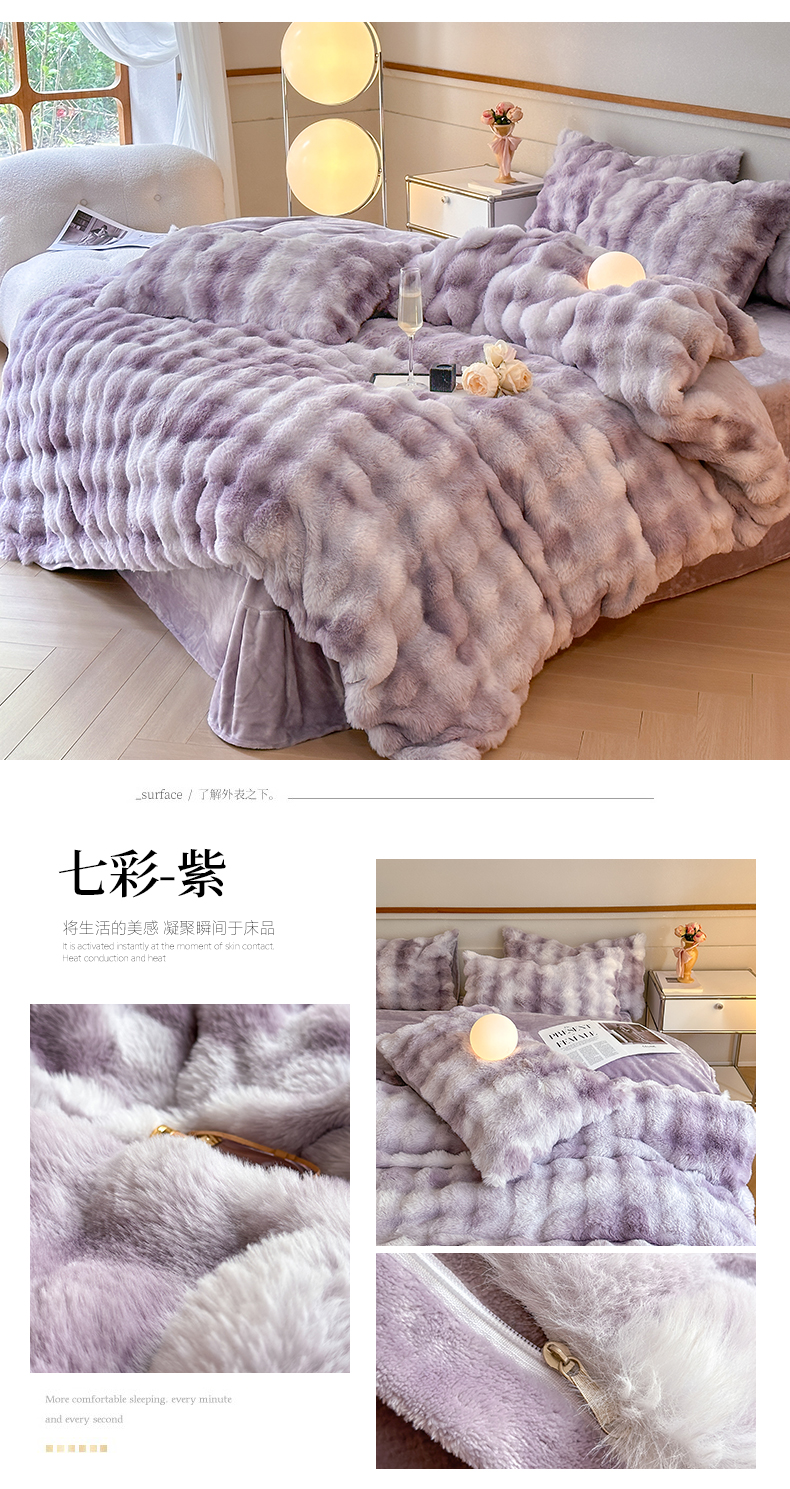 商品名称:畅畅家纺 2024新款AB版冬季纯色七彩兔兔绒兔毛绒牛奶绒四件套 七彩-紫