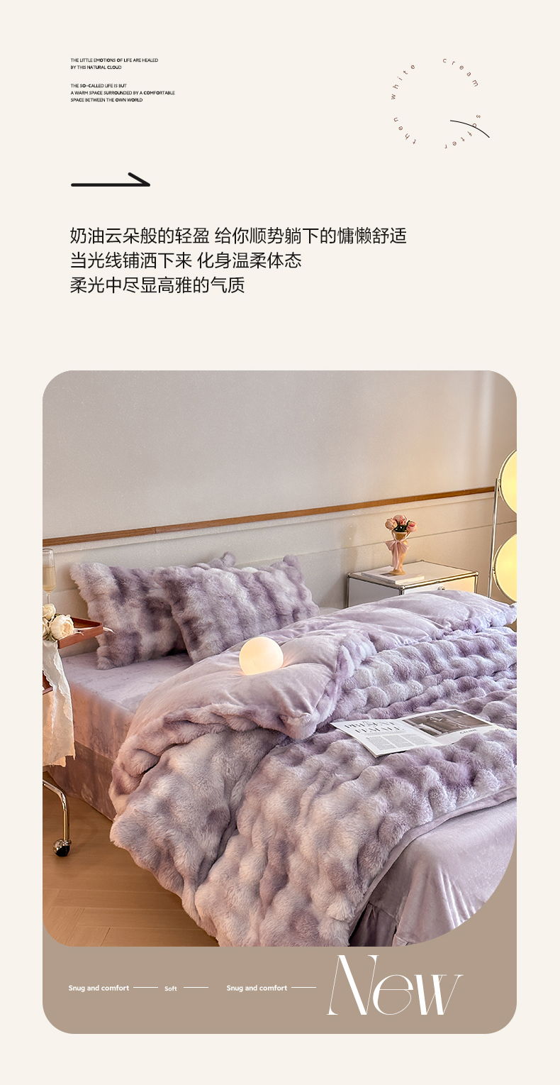 (总) 畅畅家纺 2023新款加厚AB版大泡泡绒皮草兔毛四件套,大泡泡高贵紫,大泡泡果粉,大泡泡果绿,大泡泡卡其,大泡泡奶白咖,大泡泡烟灰