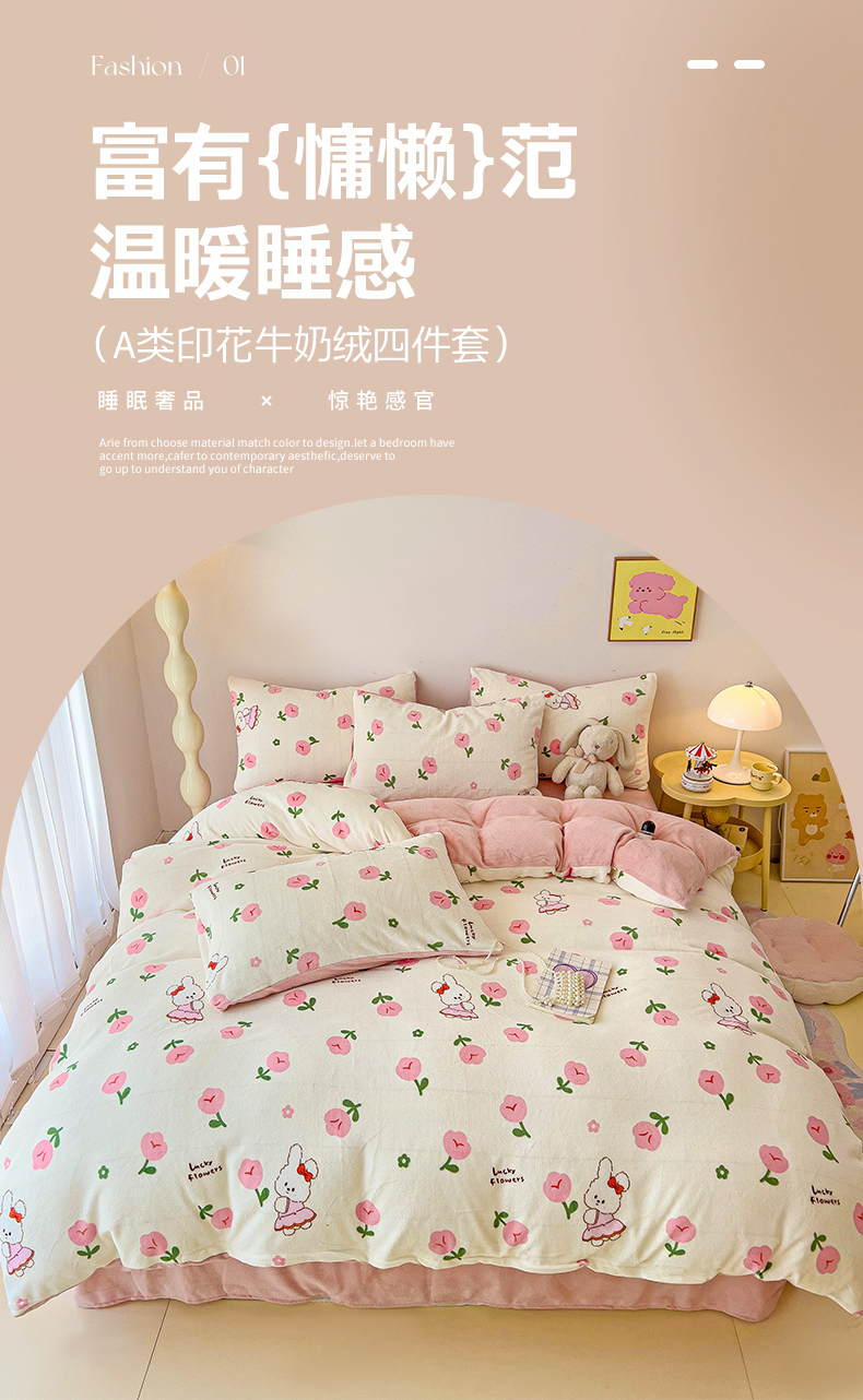当前位置: 91家纺网 > 商品网购 > 床品套件 > 四件套 > 牛奶绒四件套 > 麦瑞家纺 2025新款印花牛奶绒四件套跑量款 许愿兔