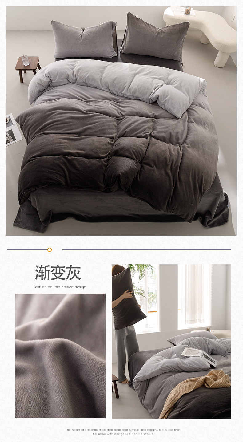 商品名称:红粉佳人 2025新款小清新双面牛奶绒四件套渐变灰