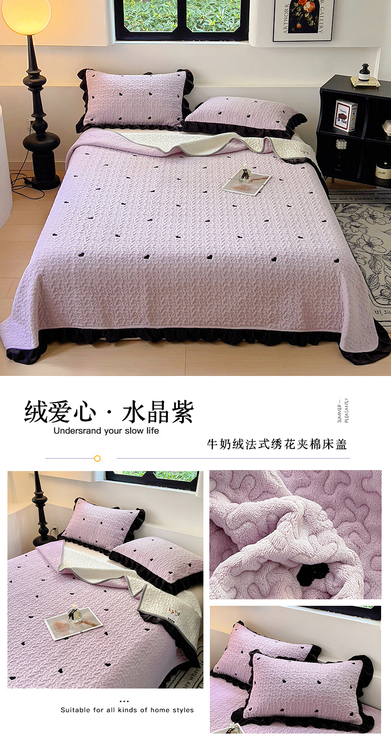 (总)美梦家纺 2024新款牛奶绒法式绣花夹棉床盖