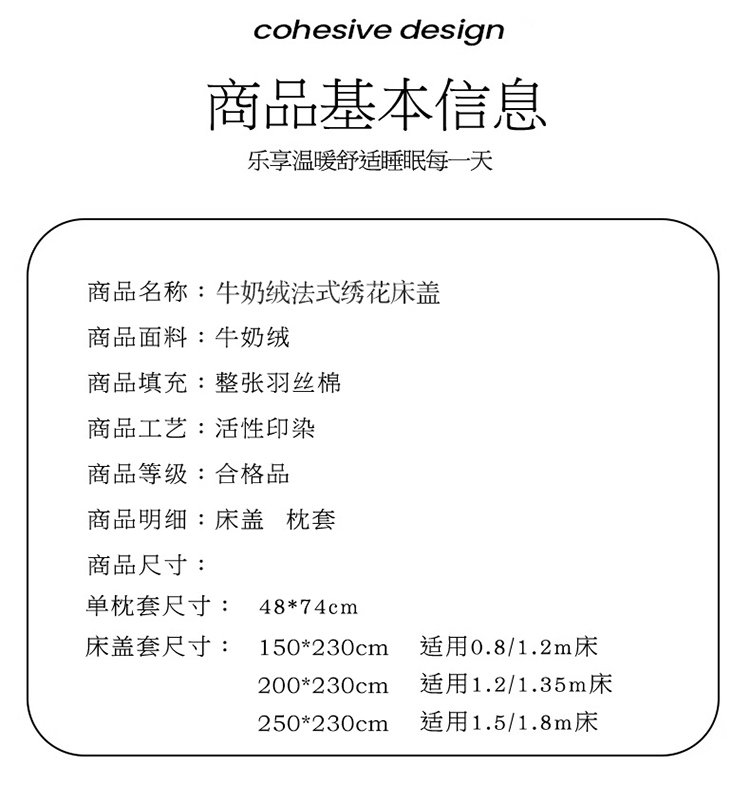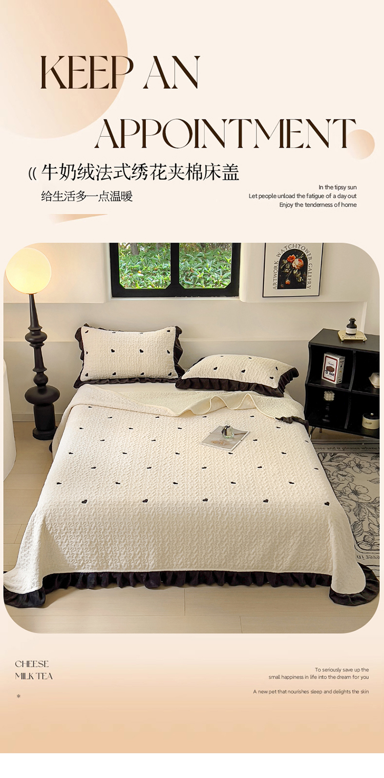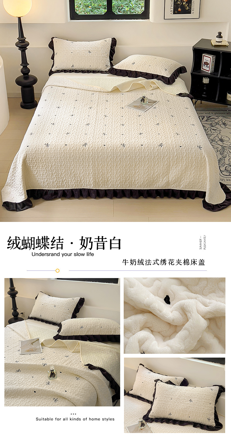 商品名称:(总)美梦家纺 2024新款牛奶绒法式绣花夹棉床盖