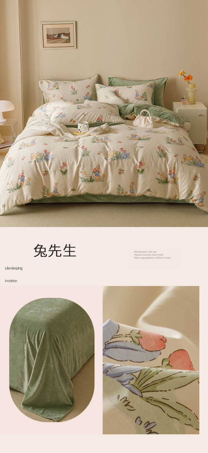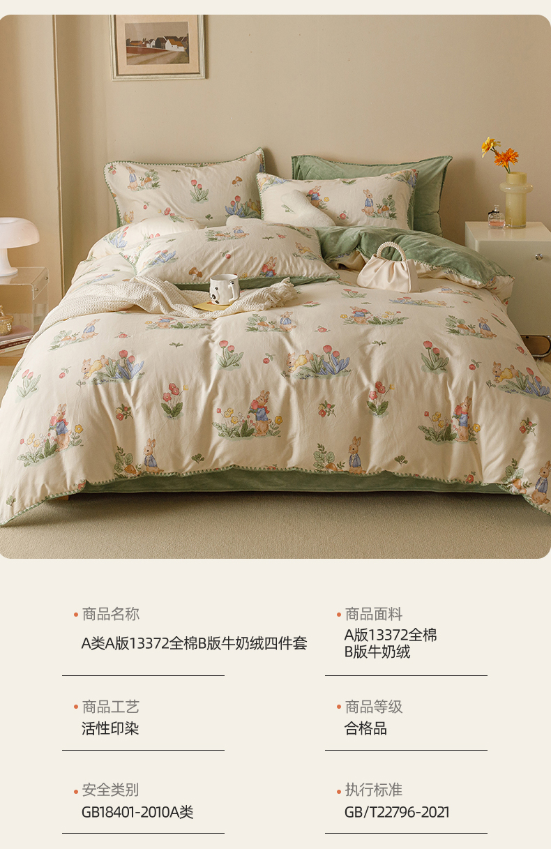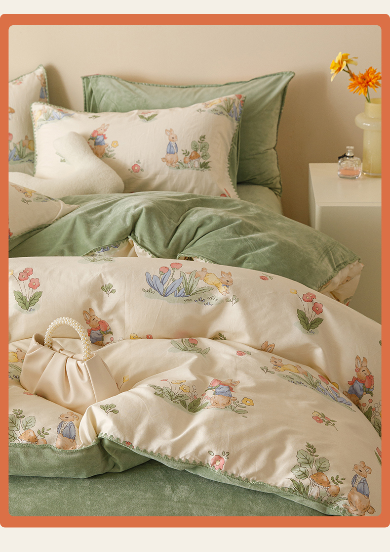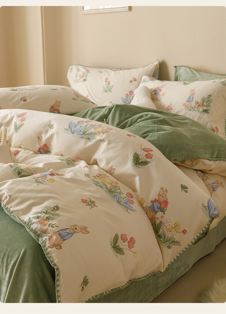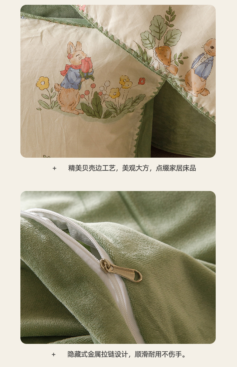 当前位置: 91家纺网 > 商品网购 > 床品套件 > 四件套 > 牛奶绒四件套 > 红粉佳人新款小清新卡通贝壳边三角针棉加绒四件套工艺款牛奶绒四件套兔先生