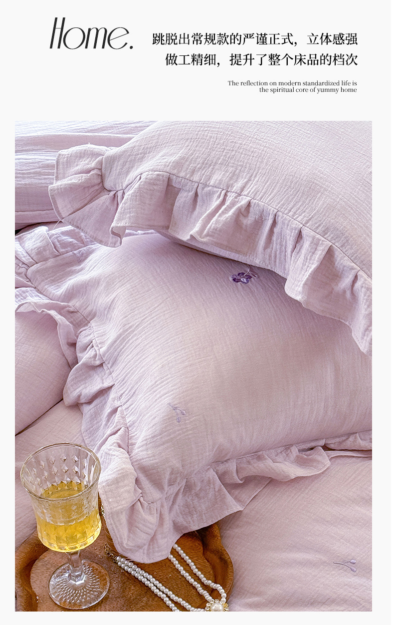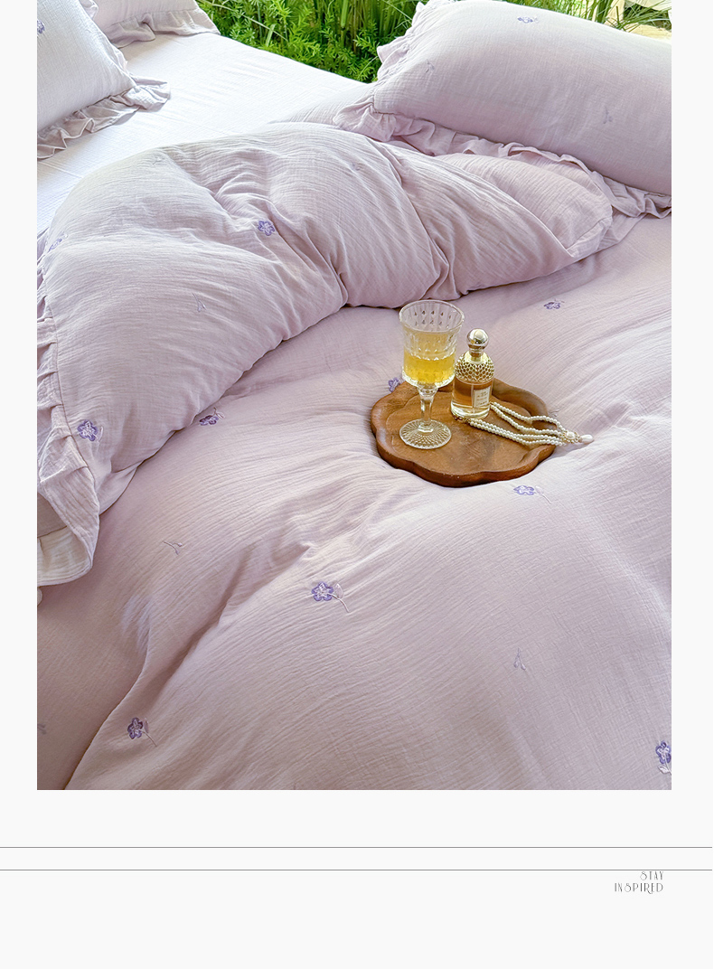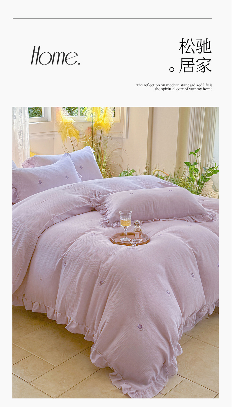 2025新品全棉色织皱皱纱刺绣款四件套 樱花草
