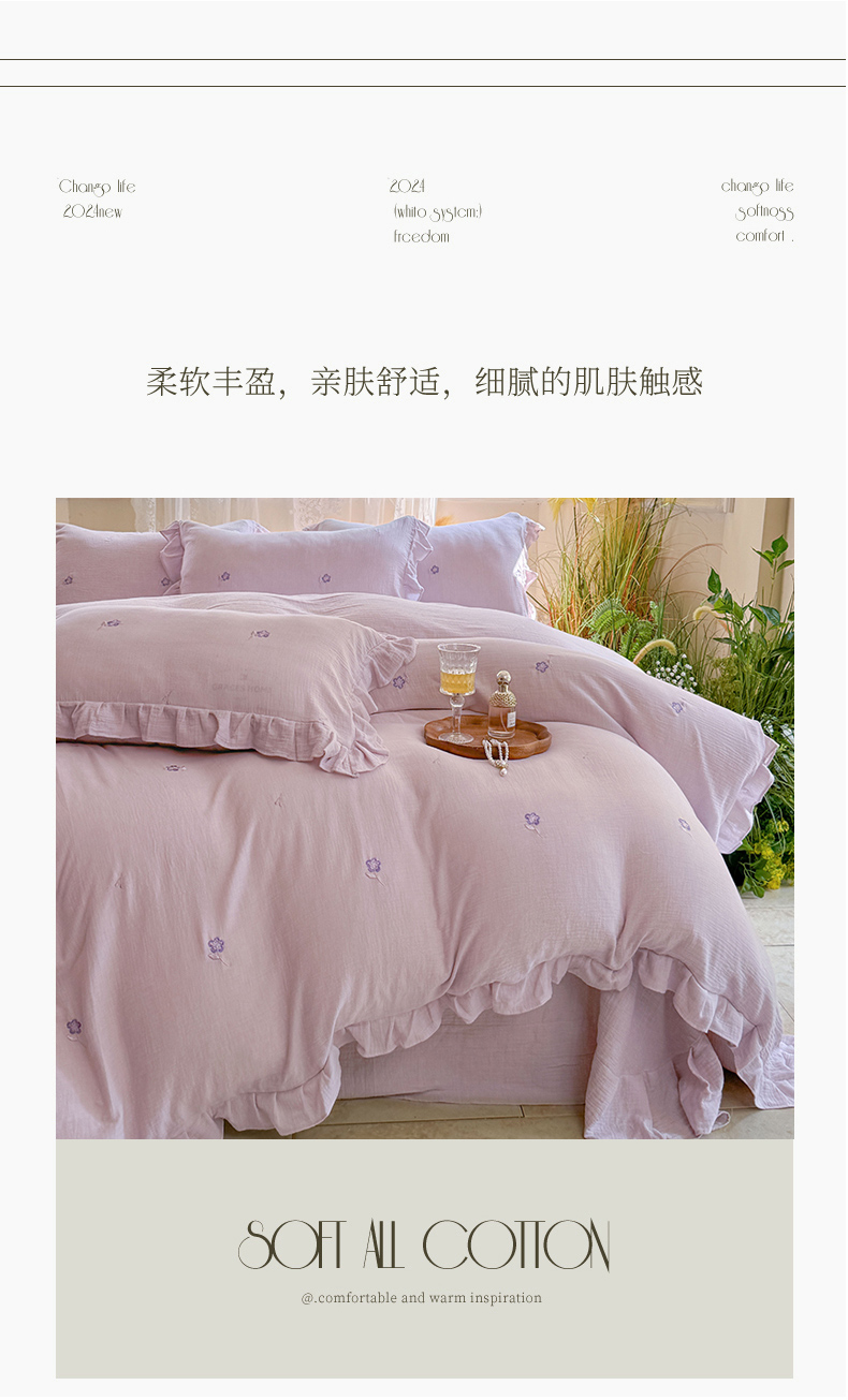 (总)木楌 2024全棉皱皱纱荷叶边刺绣工艺款四件套,爱恋,蝶翼,米菲,乔伊斯花园,文汐,星辰,米诺,挽秋,伊人,知梦
