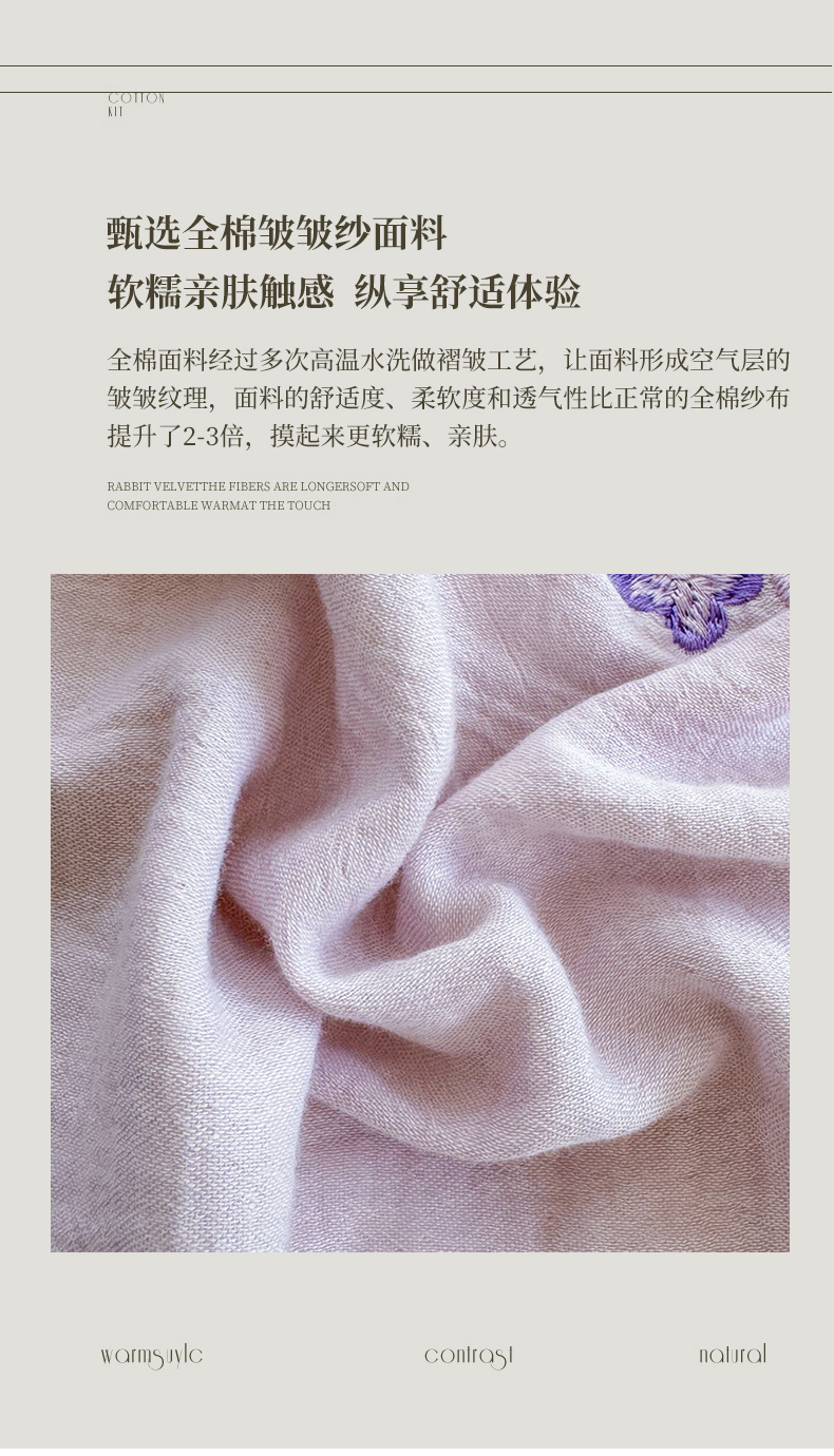 木楌 2025新款全棉A类皱皱纱印花四件套 春泥,春泥