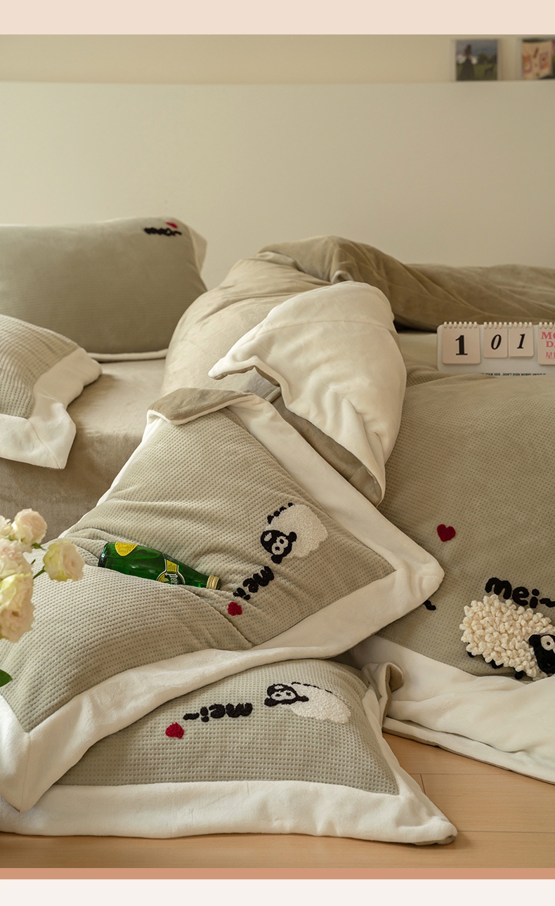 商品名称:(总)名品优仓 2024新款华夫格牛奶绒毛巾绣四件套-喜洋洋