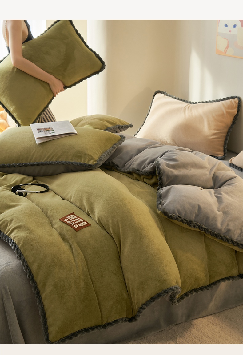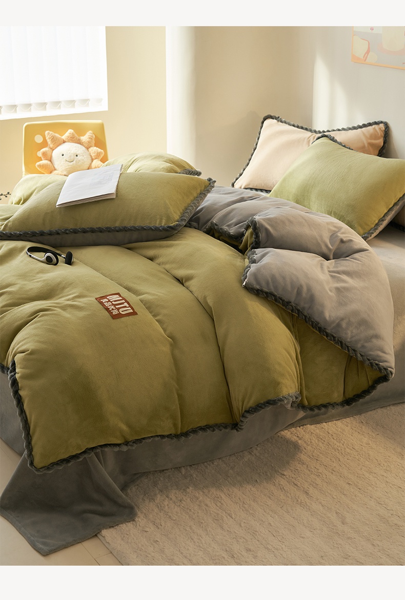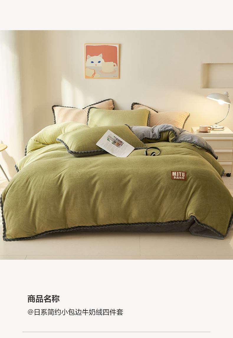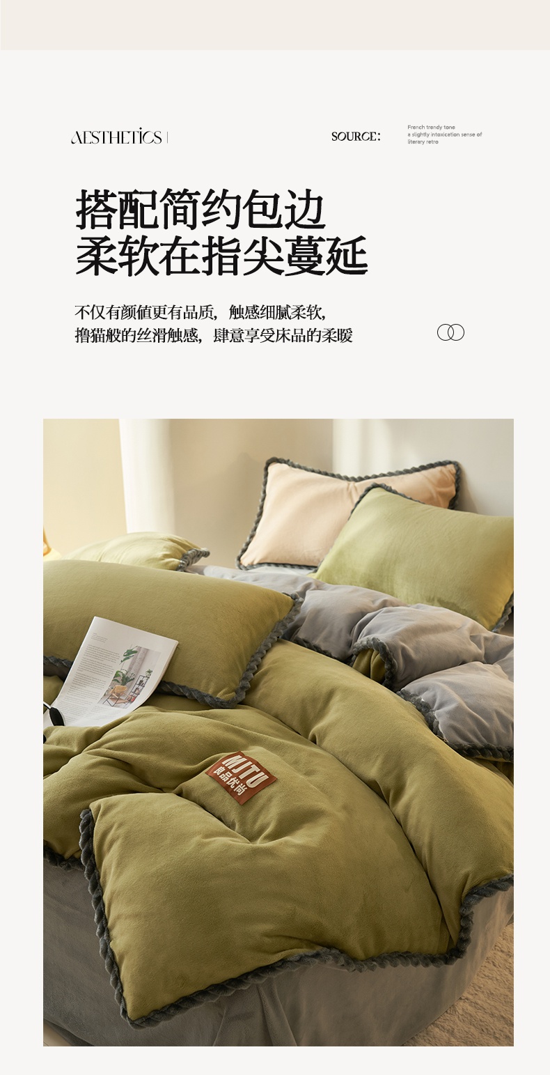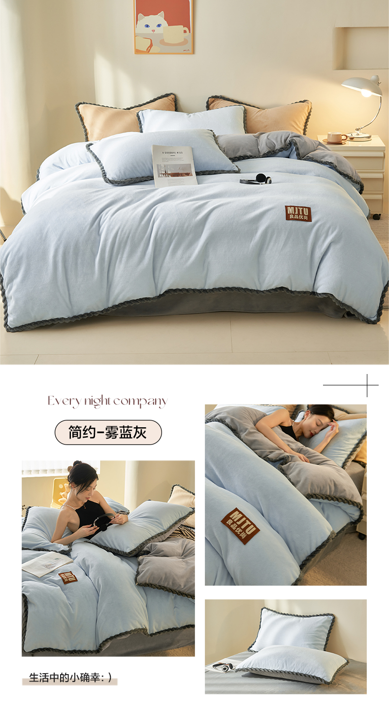 • 91家纺网 家纺一手货源 找家纺 晨曦家纺 2024新款日系简约小包边牛奶绒单被套 简约-浅绿浅灰