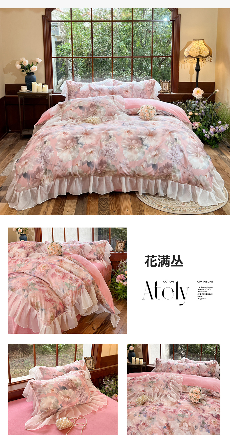 (总)易辰美 2025新款法式公主风夹棉床盖四件套,艾薇尔-桔,艾薇尔-紫,草莓啵啵-粉,草莓啵啵-兰,黑樱桃,煌朝-灰,蔻依娜-粉,榴夏-灰,禧利-兰,一只甜