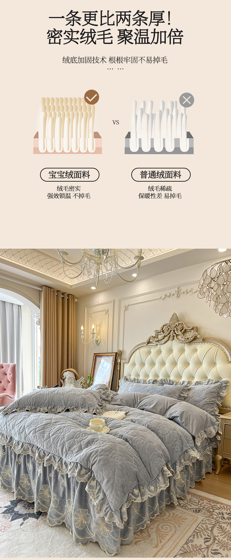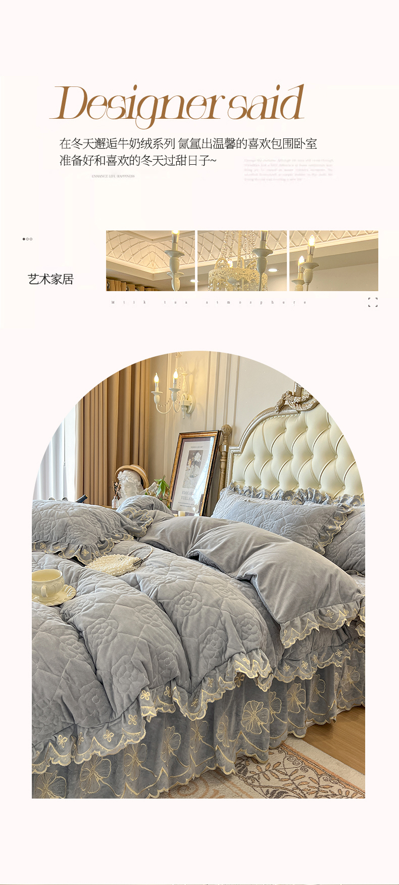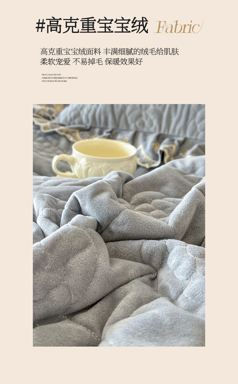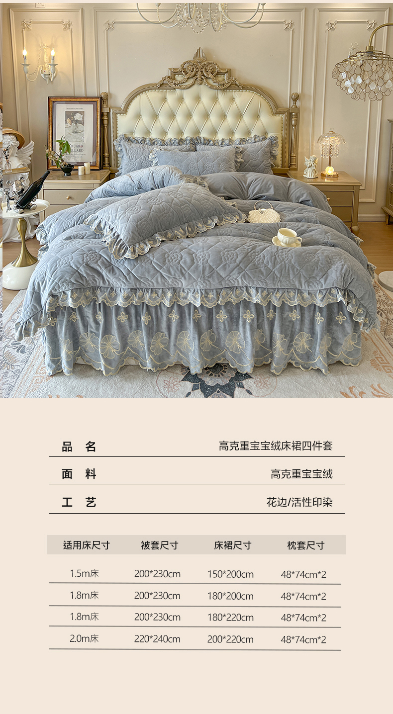 当前位置: 91家纺网 > 商品网购 > 床品套件 > 四件套 > 其它四件套 > 网红馆(ck家纺) 2025新款高克重宝宝绒床裙四件套 银素灰
