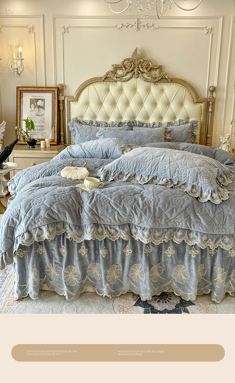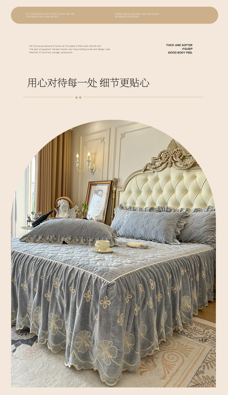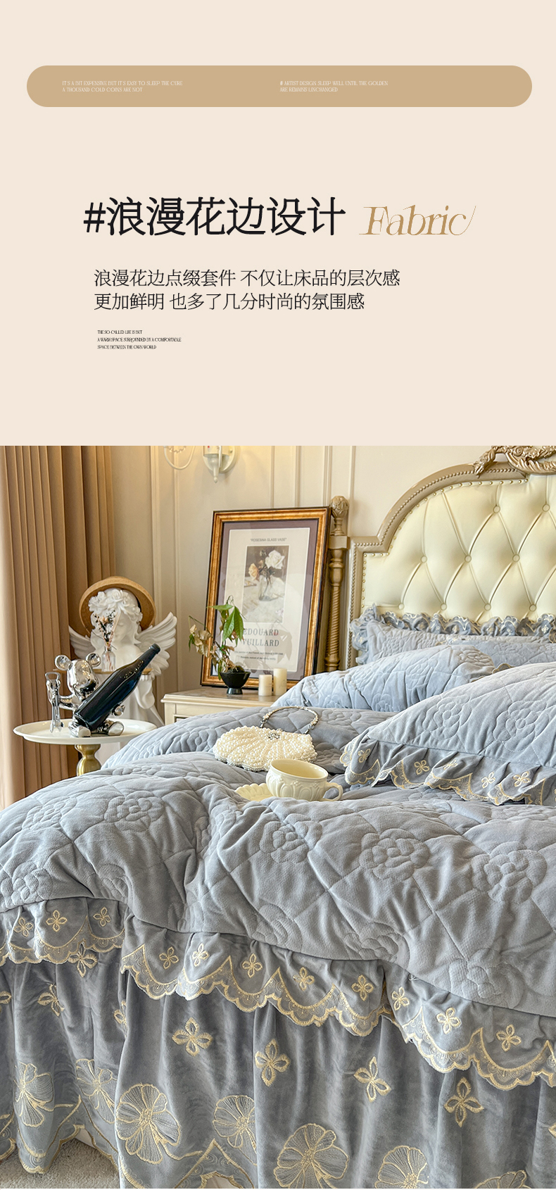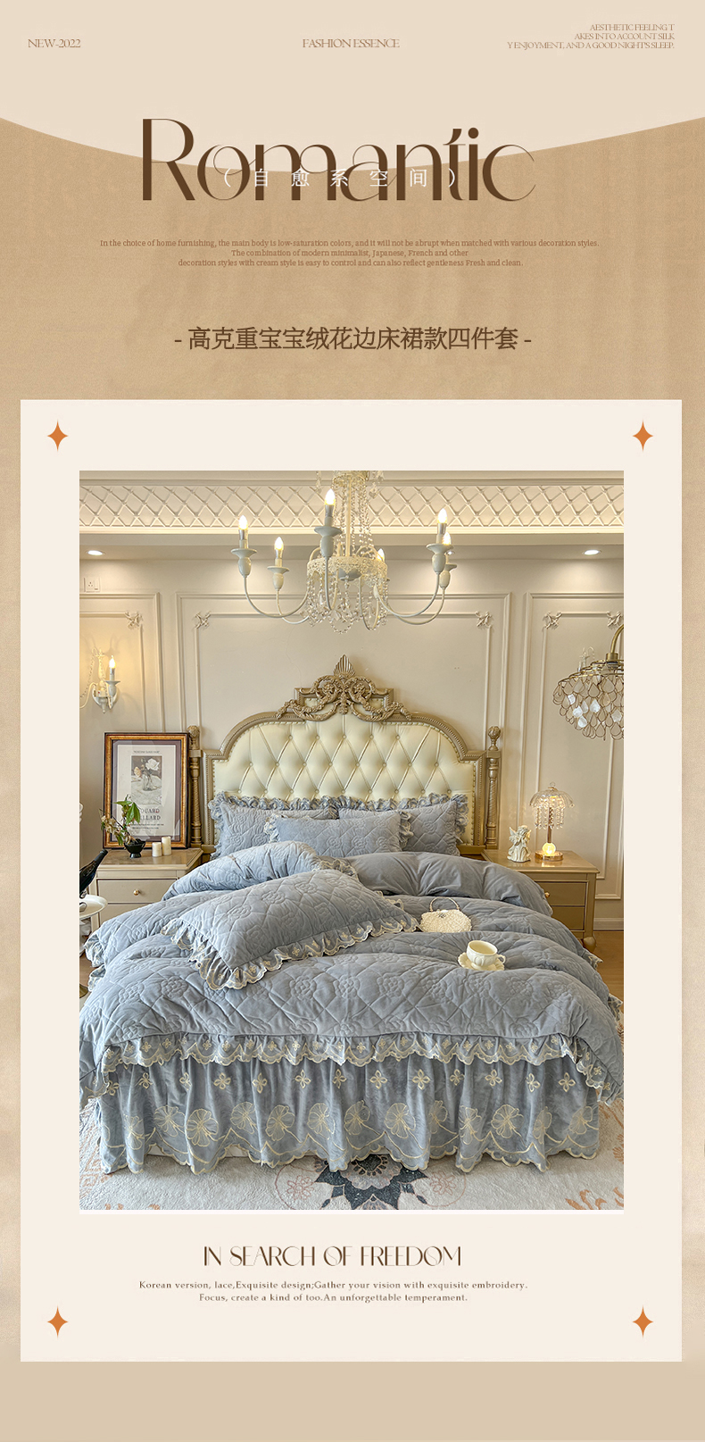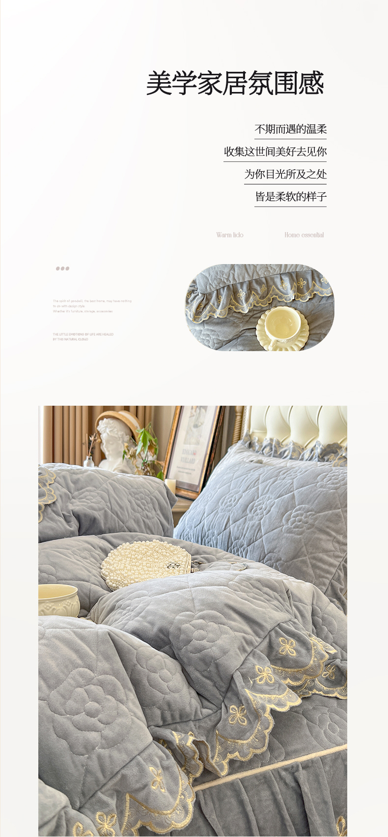 当前位置: 91家纺网 > 商品网购 > 床品套件 > 四件套 > 其它四件套 > 网红馆(ck家纺) 2025新款高克重宝宝绒床裙四件套 银素灰