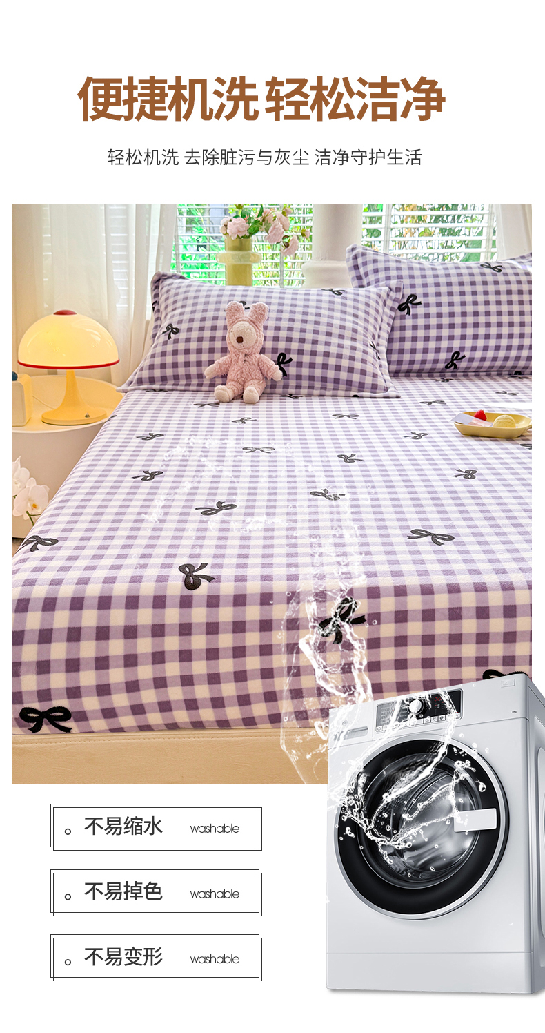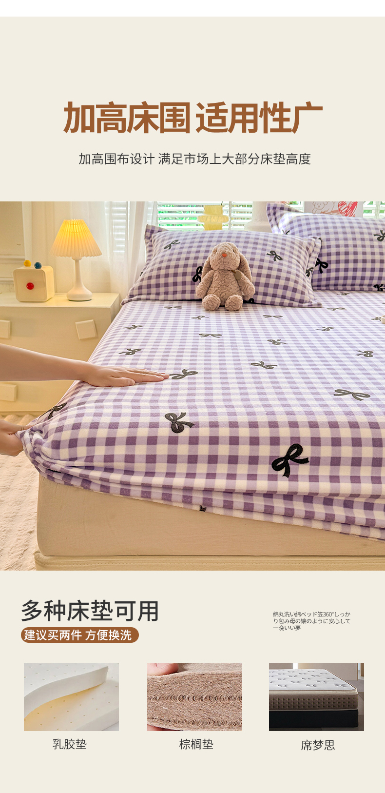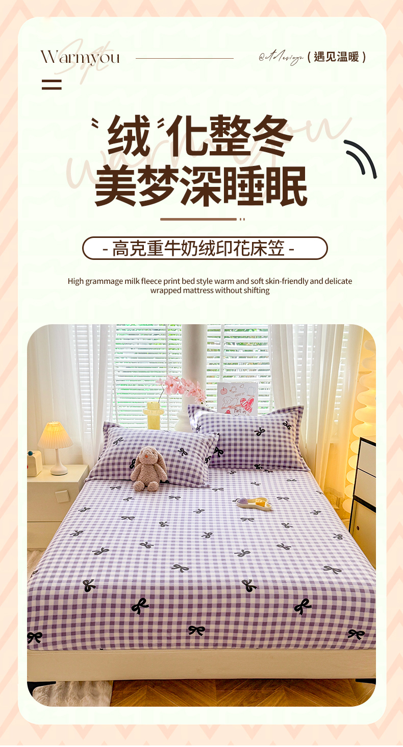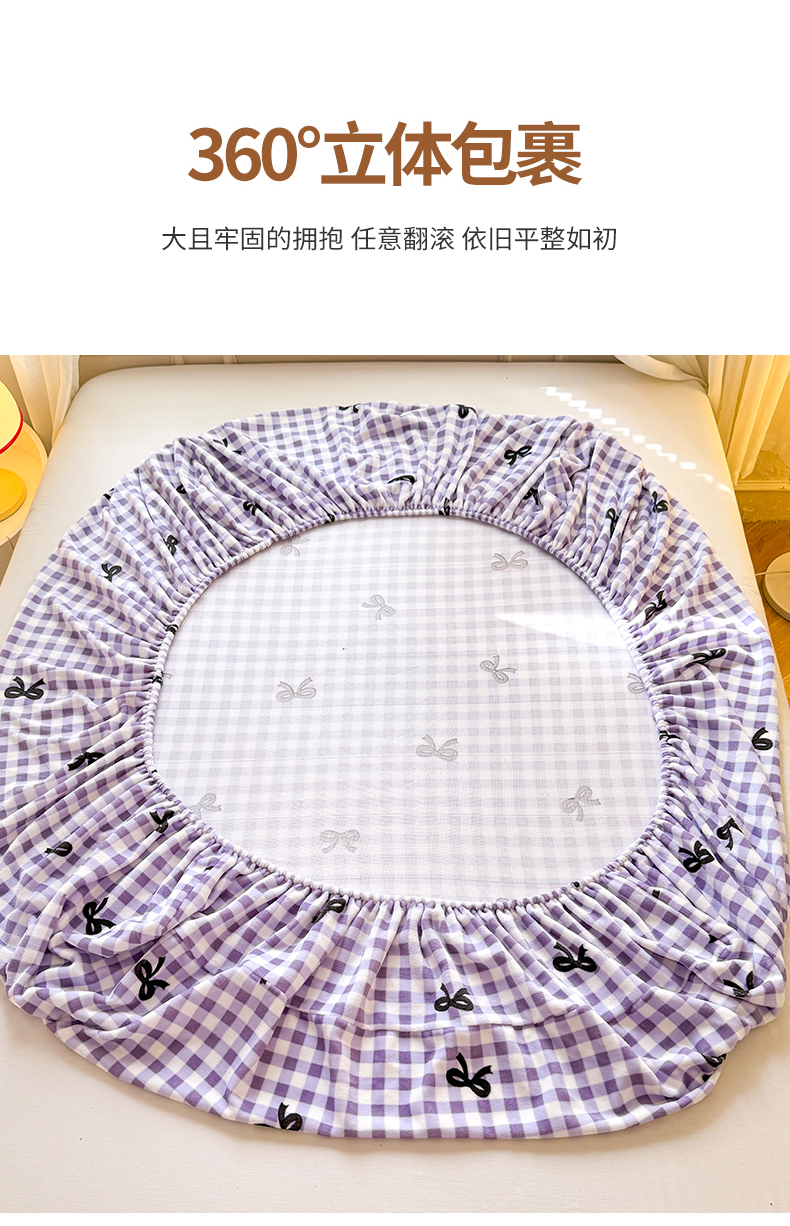 妖妖家纺 2024新款200克牛奶绒单床笠 格子蝴蝶结-紫