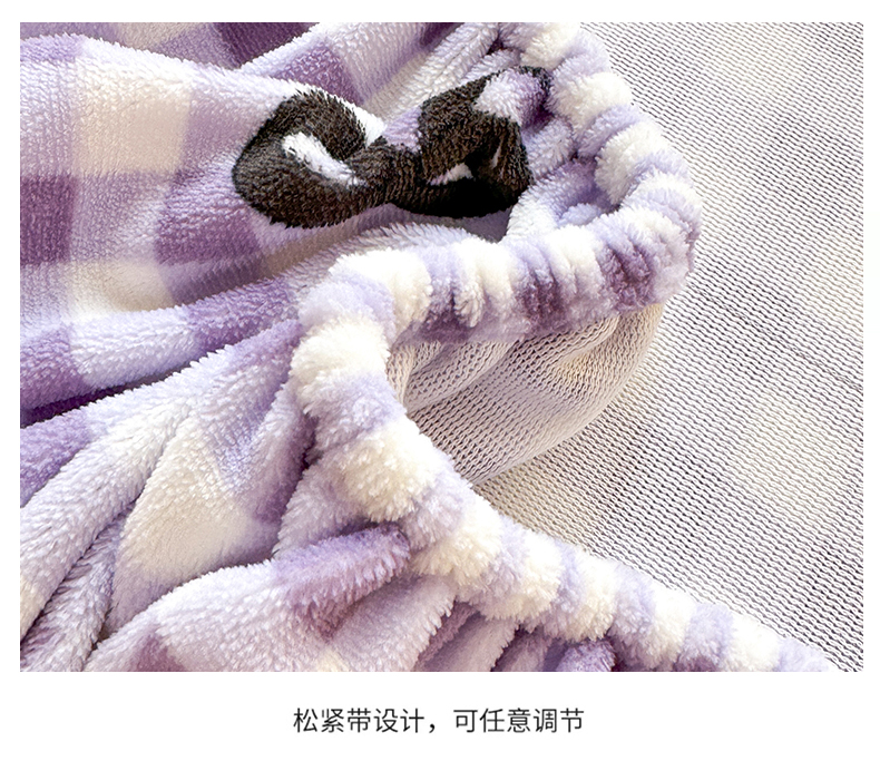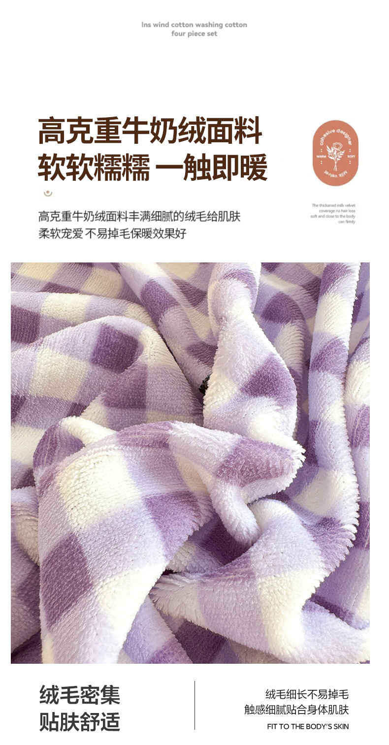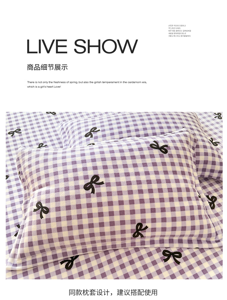 商品名称:妖妖家纺 2024新款200克牛奶绒单床笠 格子蝴蝶结-紫