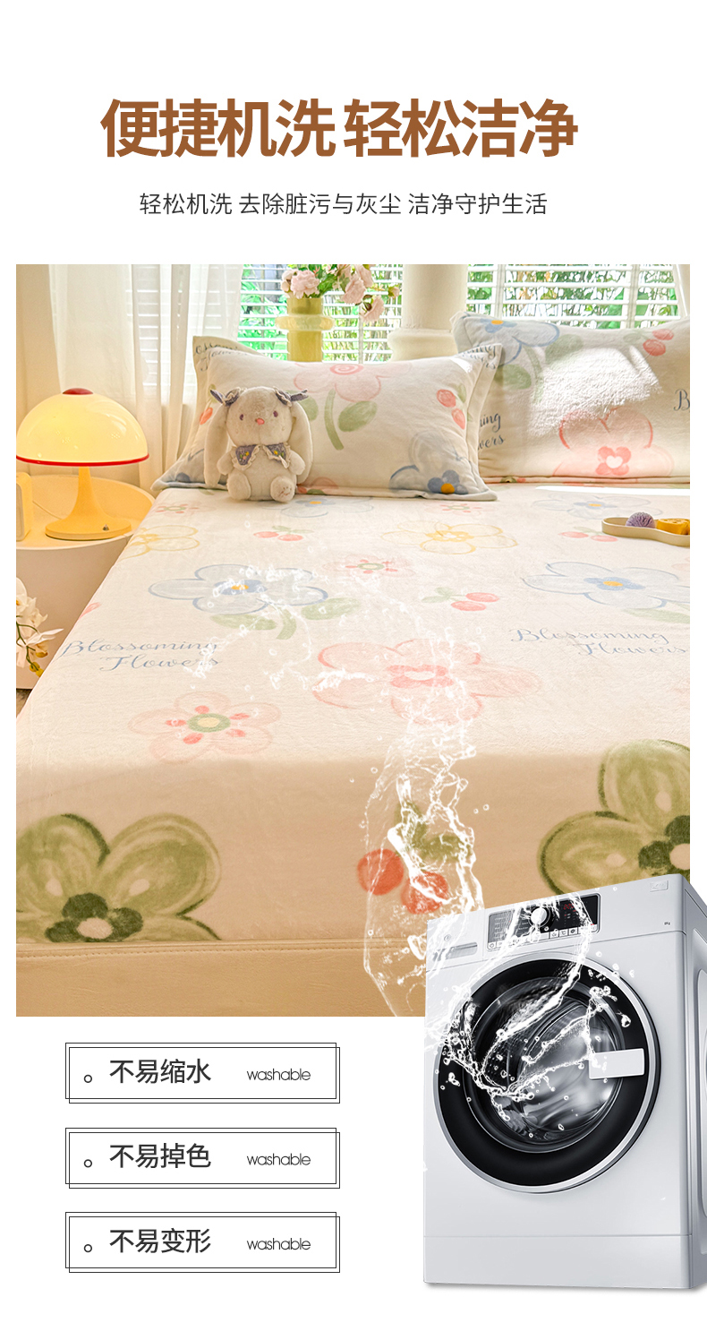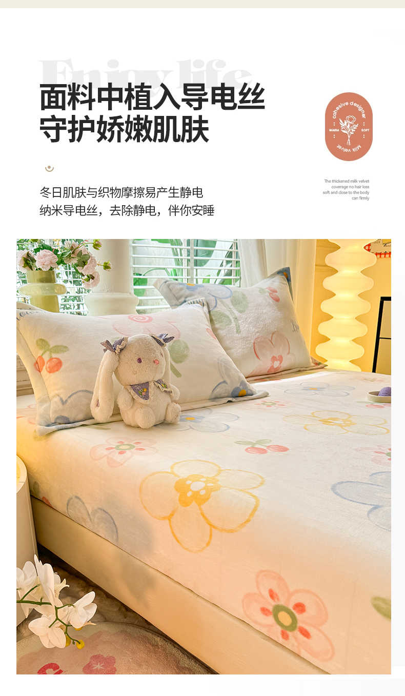 商品名称:妖妖家纺 2024新款200克牛奶绒单床笠 乐享花开