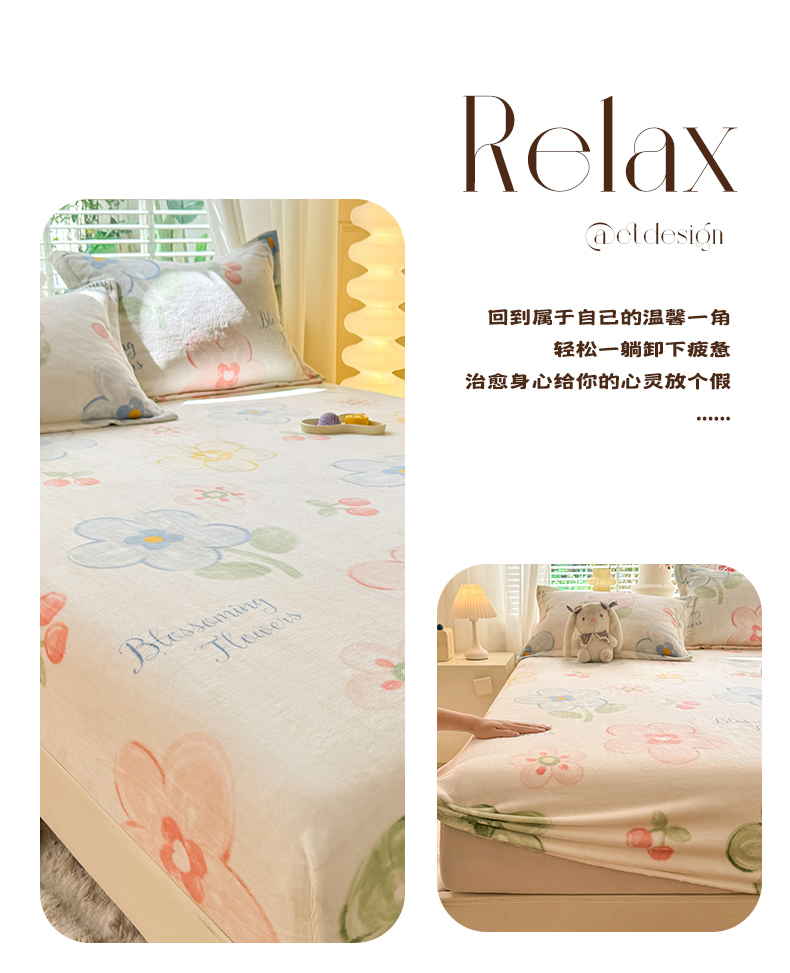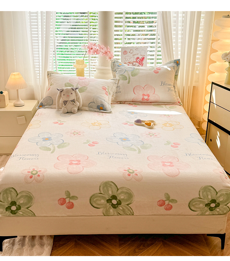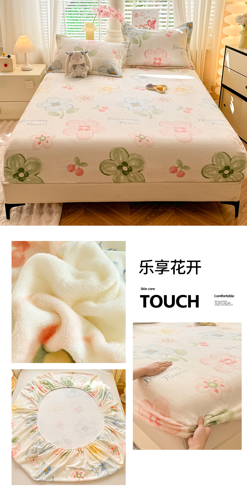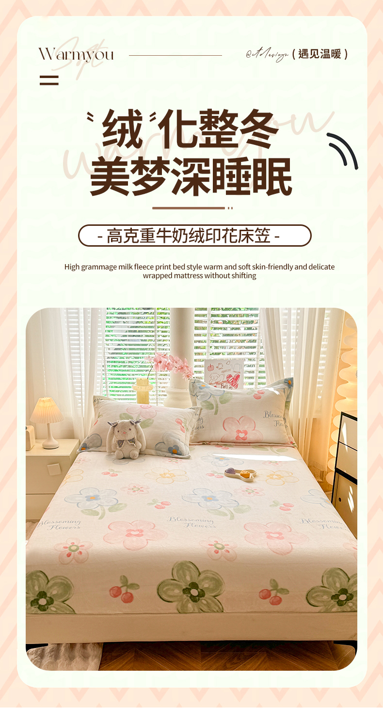 妖妖家纺 2024新款200克牛奶绒单床笠 乐享花开