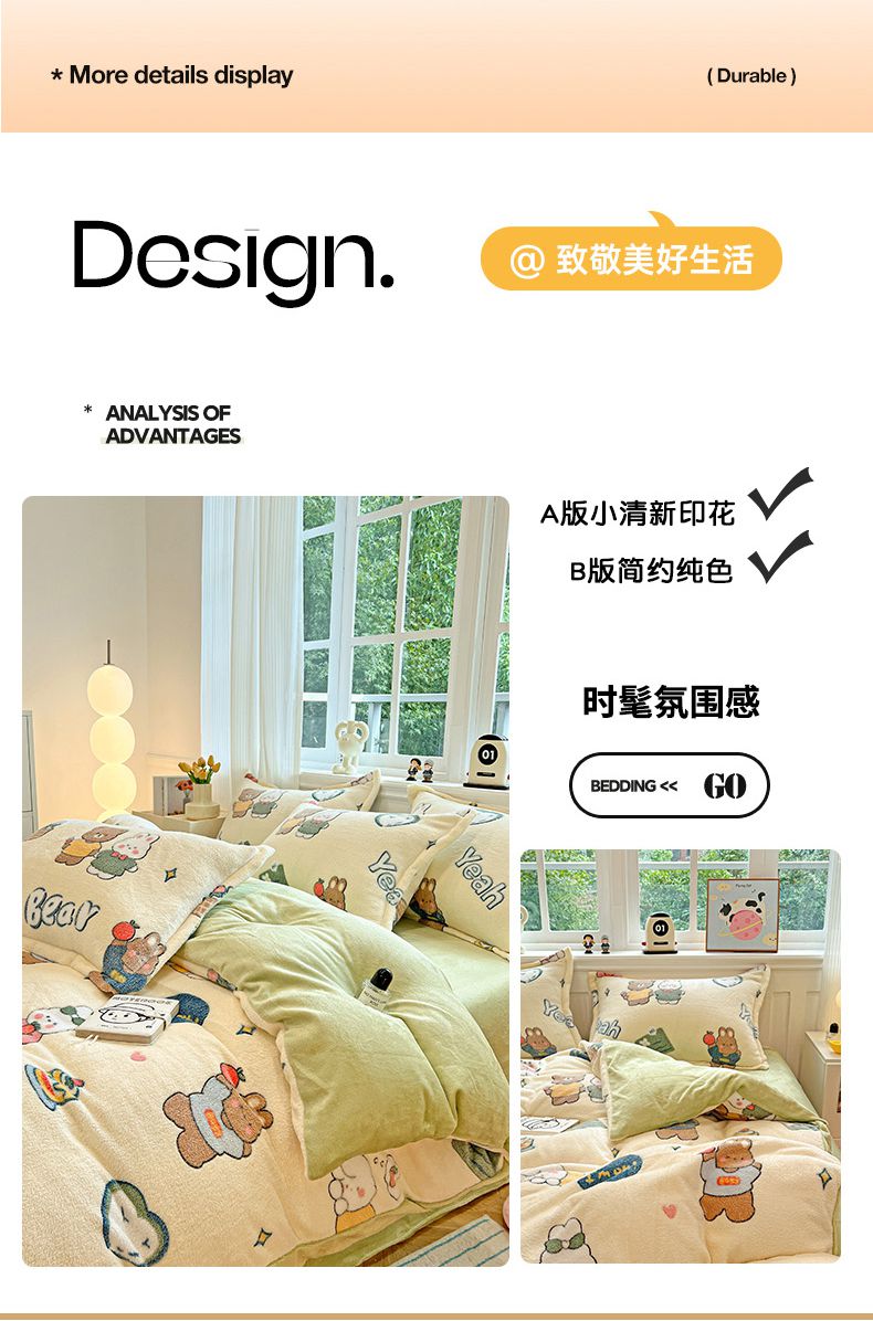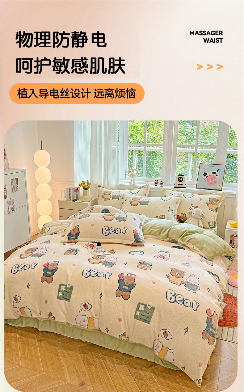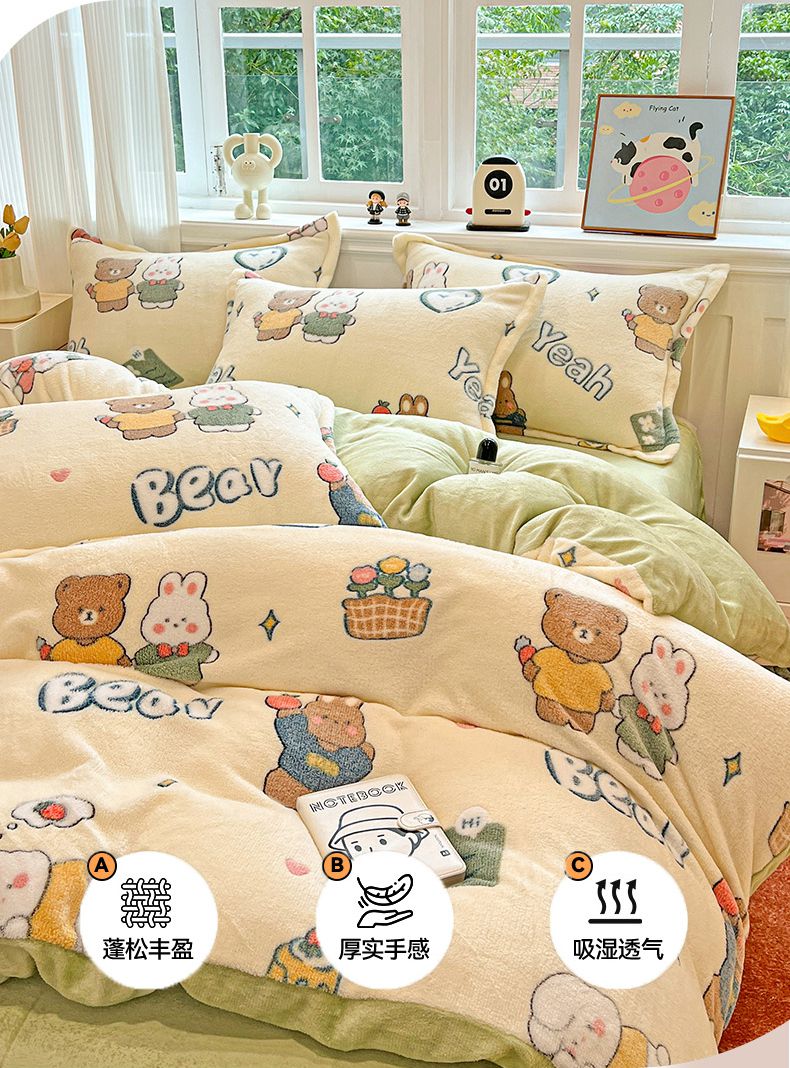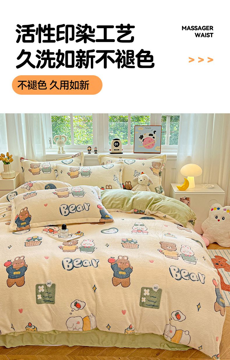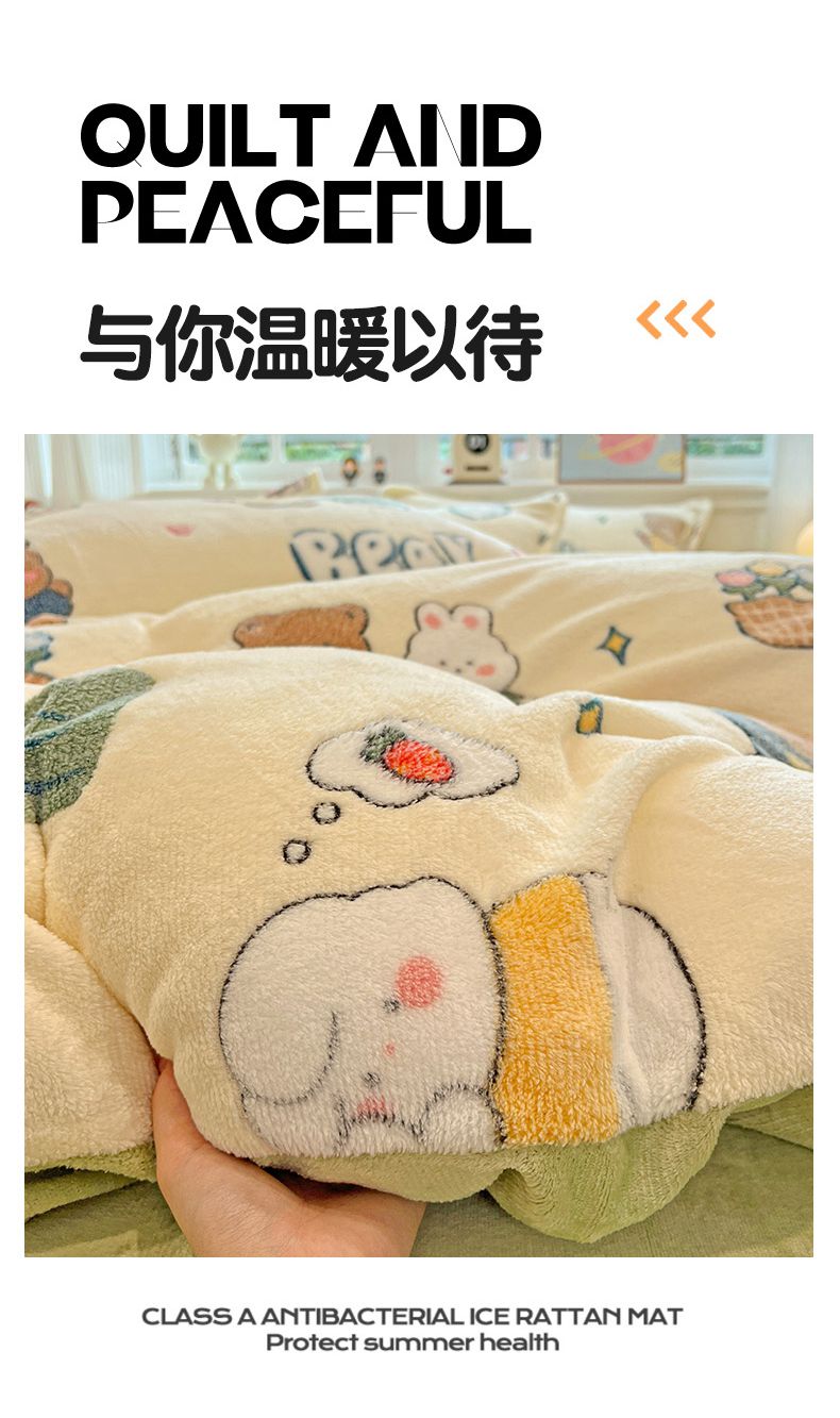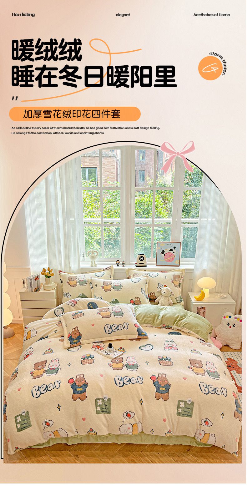 (总)韩巢家纺 2025新款高克重雪花绒牛奶绒四件套系列,郁金香,爱心熊(绿),巴丽娜,大白鹅,大耳朵兔,蝶雅,花花世界,灰色轨迹,米菲,七彩,田园兔(黄),小怪兽,幸运兔,英伦熊