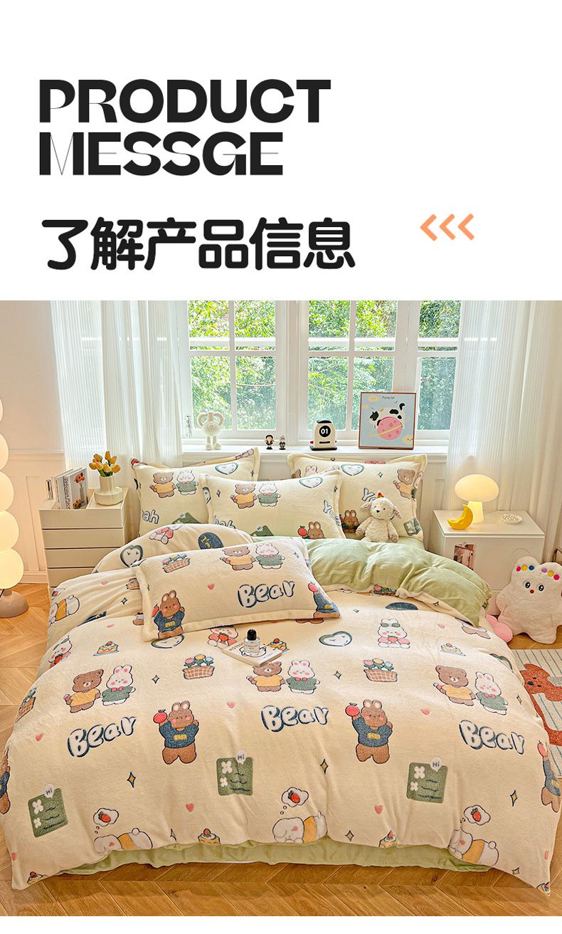 • 91家纺网 家纺一手货源 找家纺 (总)韩巢家纺 2025新款高克重雪花绒牛奶绒四件套系列,郁金香,爱心熊(绿),巴丽娜,大白鹅,大耳朵兔,蝶雅,花花世界,灰色轨迹,米菲,七彩,田园兔(黄),小怪兽,幸运兔,英伦熊