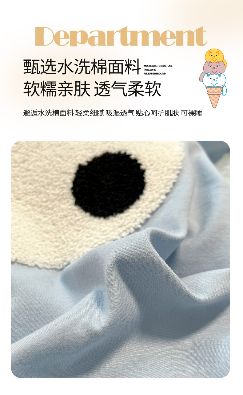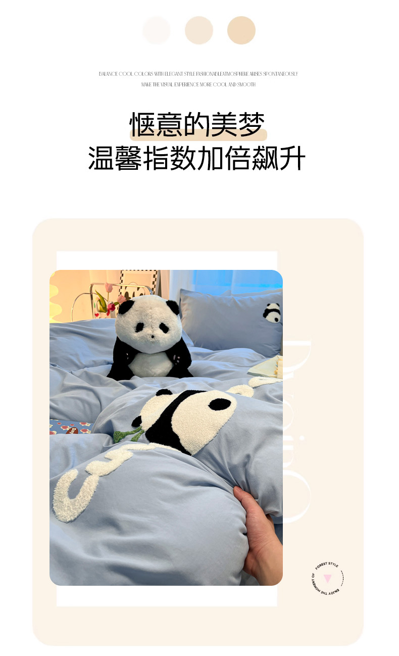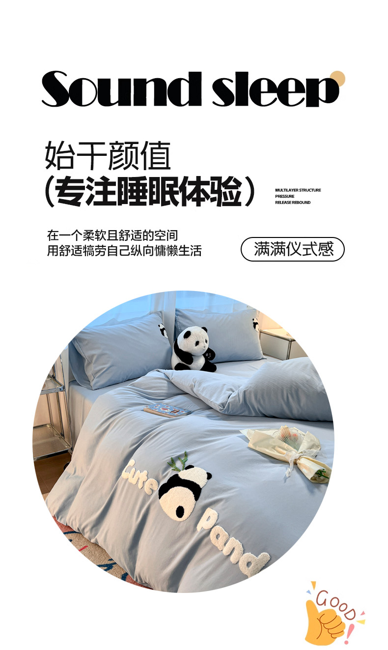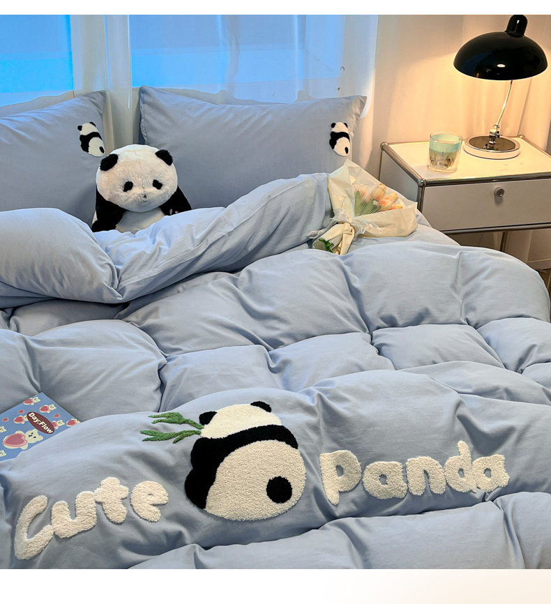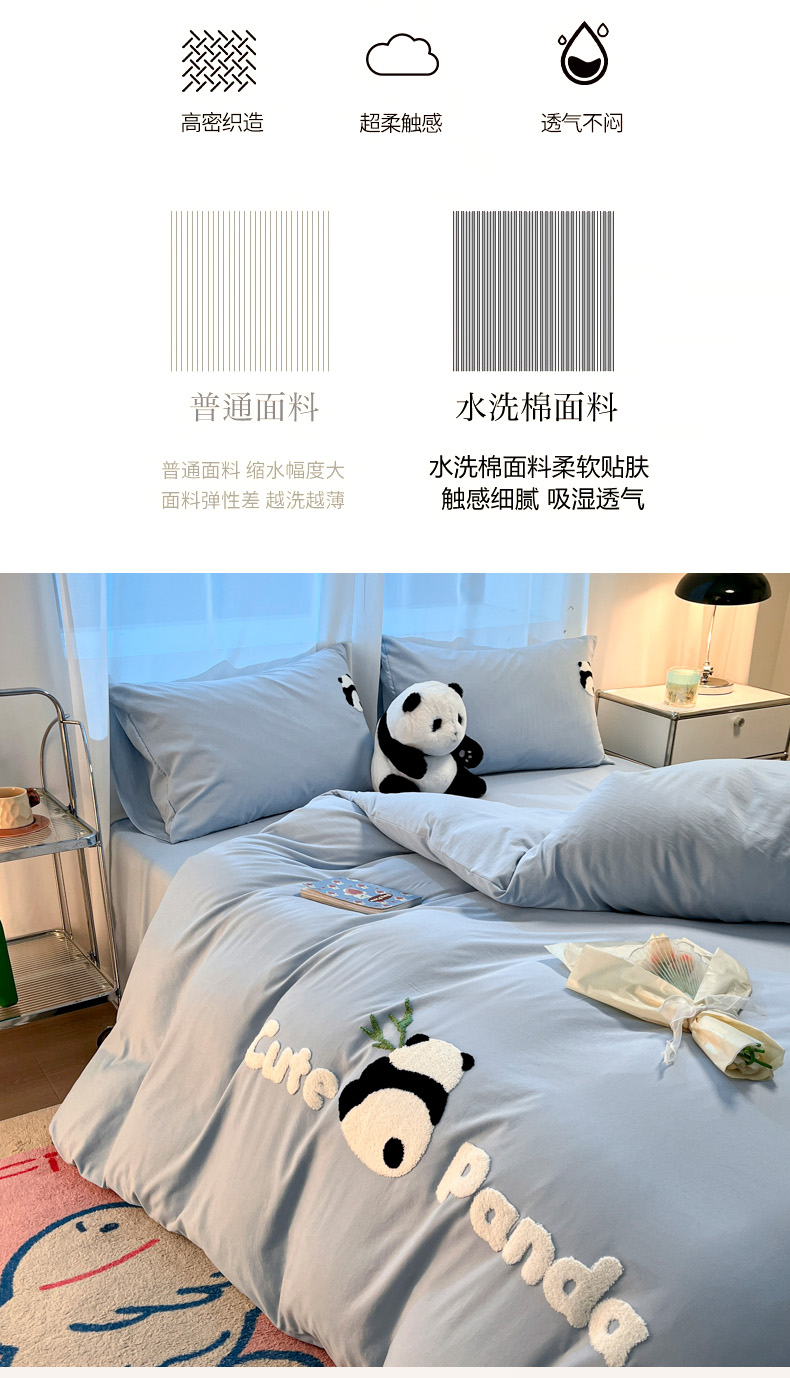 当前位置: 91家纺网 > 商品网购 > 床品套件 > 四件套 > 水洗棉四件套 > 葡萄家 2024新款超柔水洗棉毛巾绣四件套熊猫天空蓝